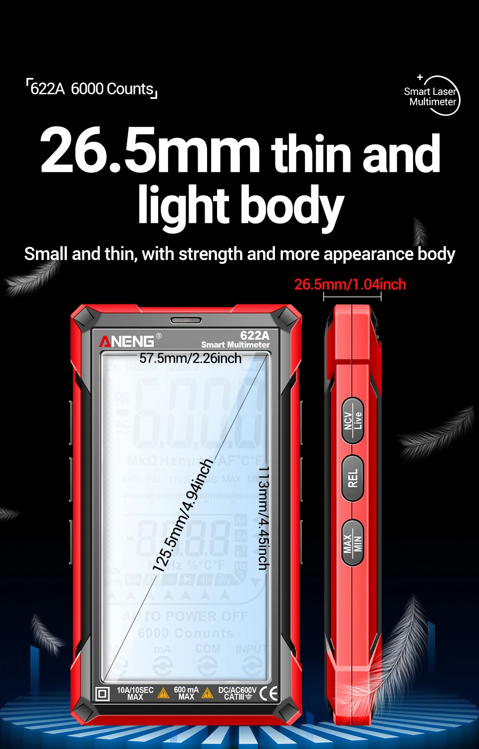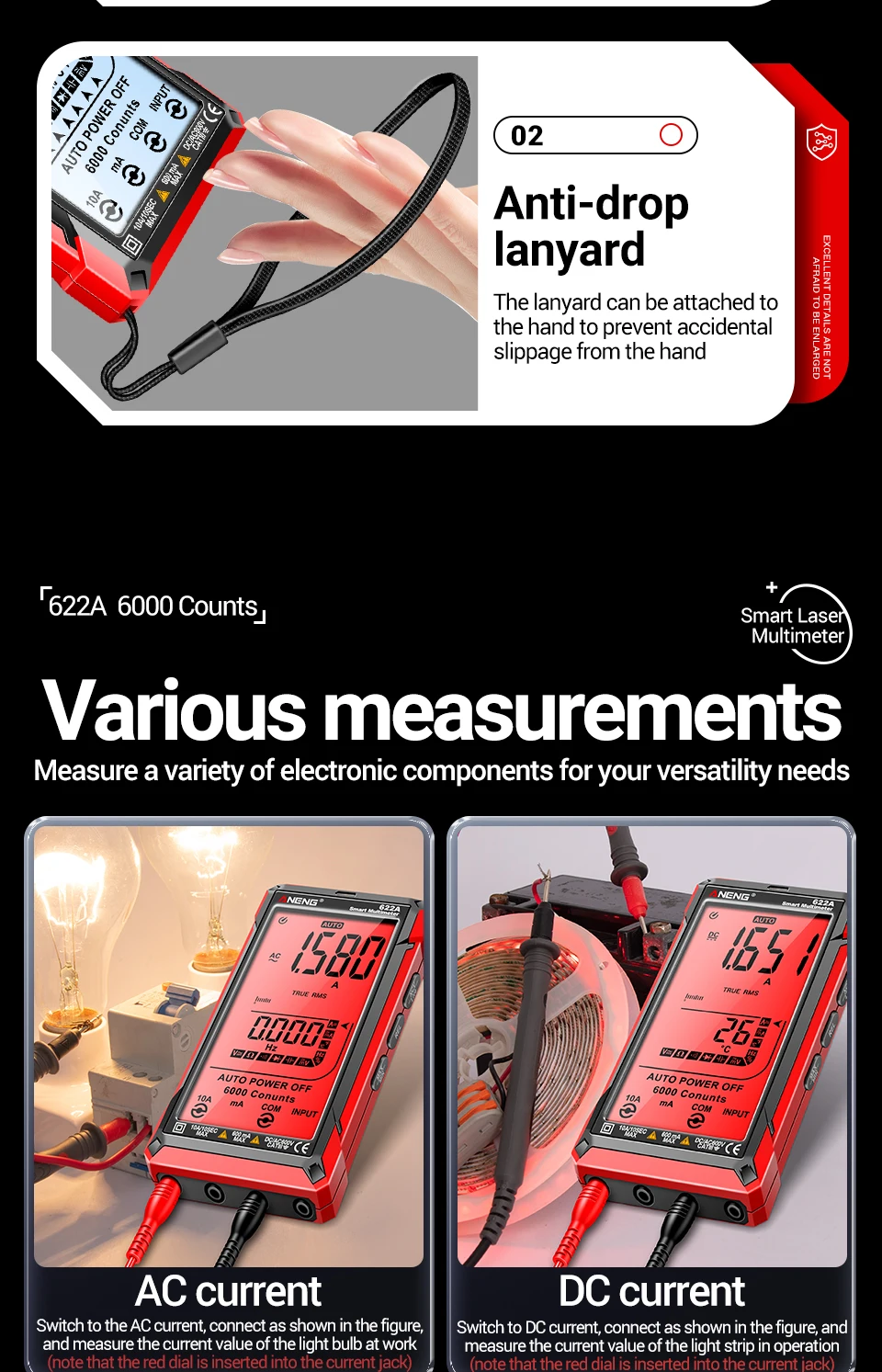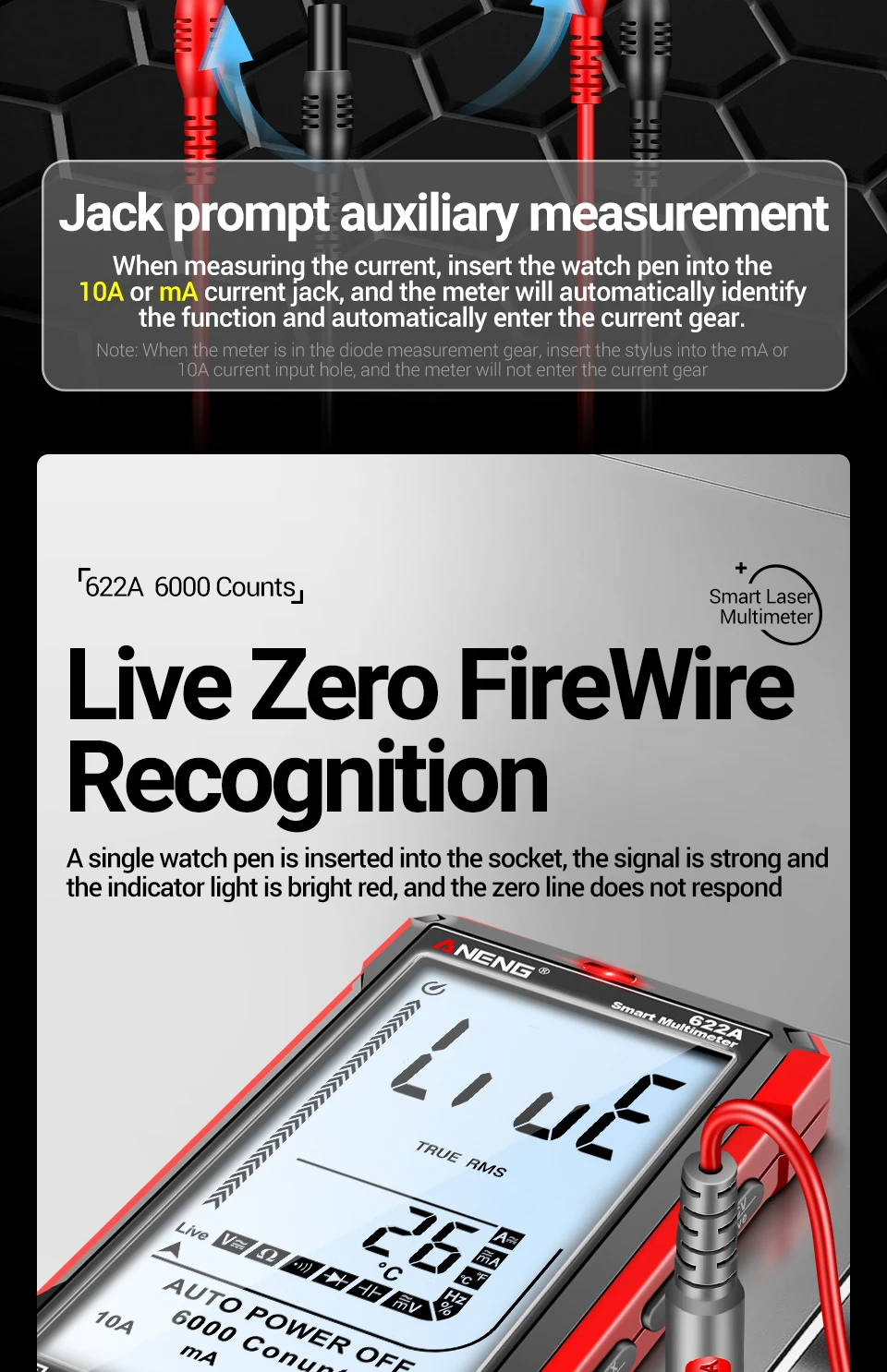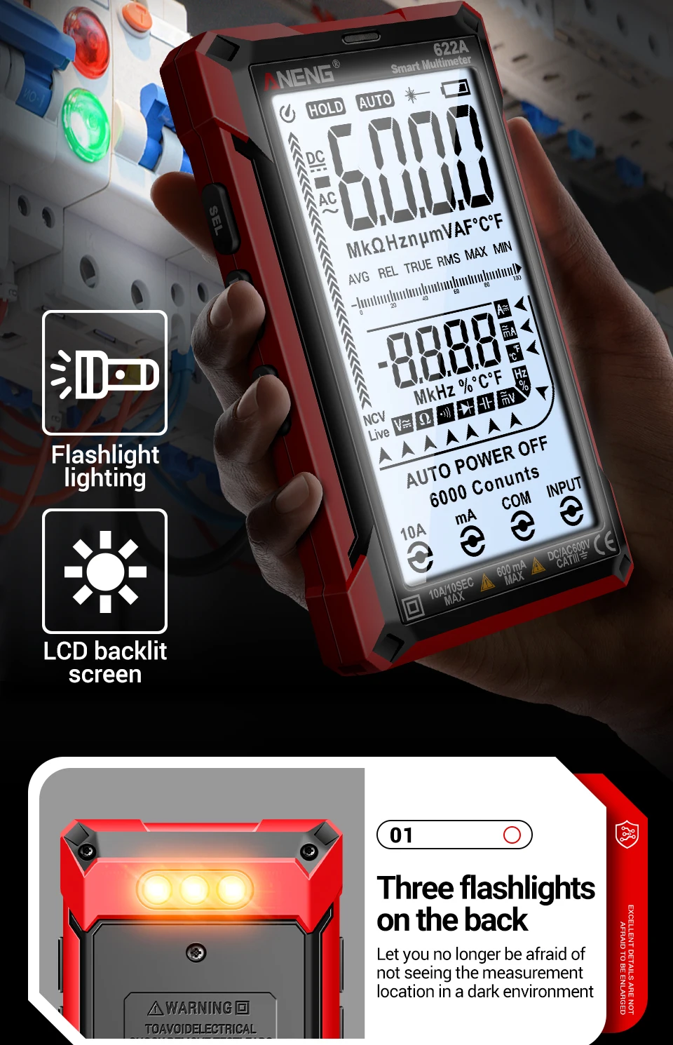 Comprar Multímetro infrarrojo láser Digital profesional ANENG 622A 6000 recuentos probador de voltaje CA herramienta de condensador de resistencia NCV de corriente CC
