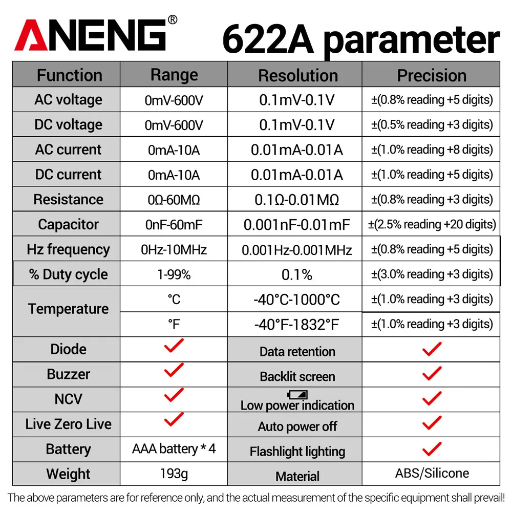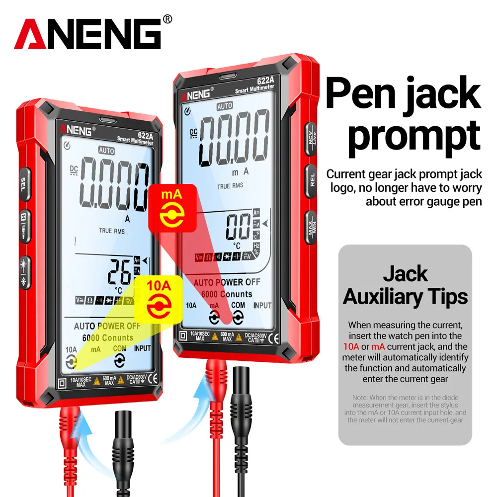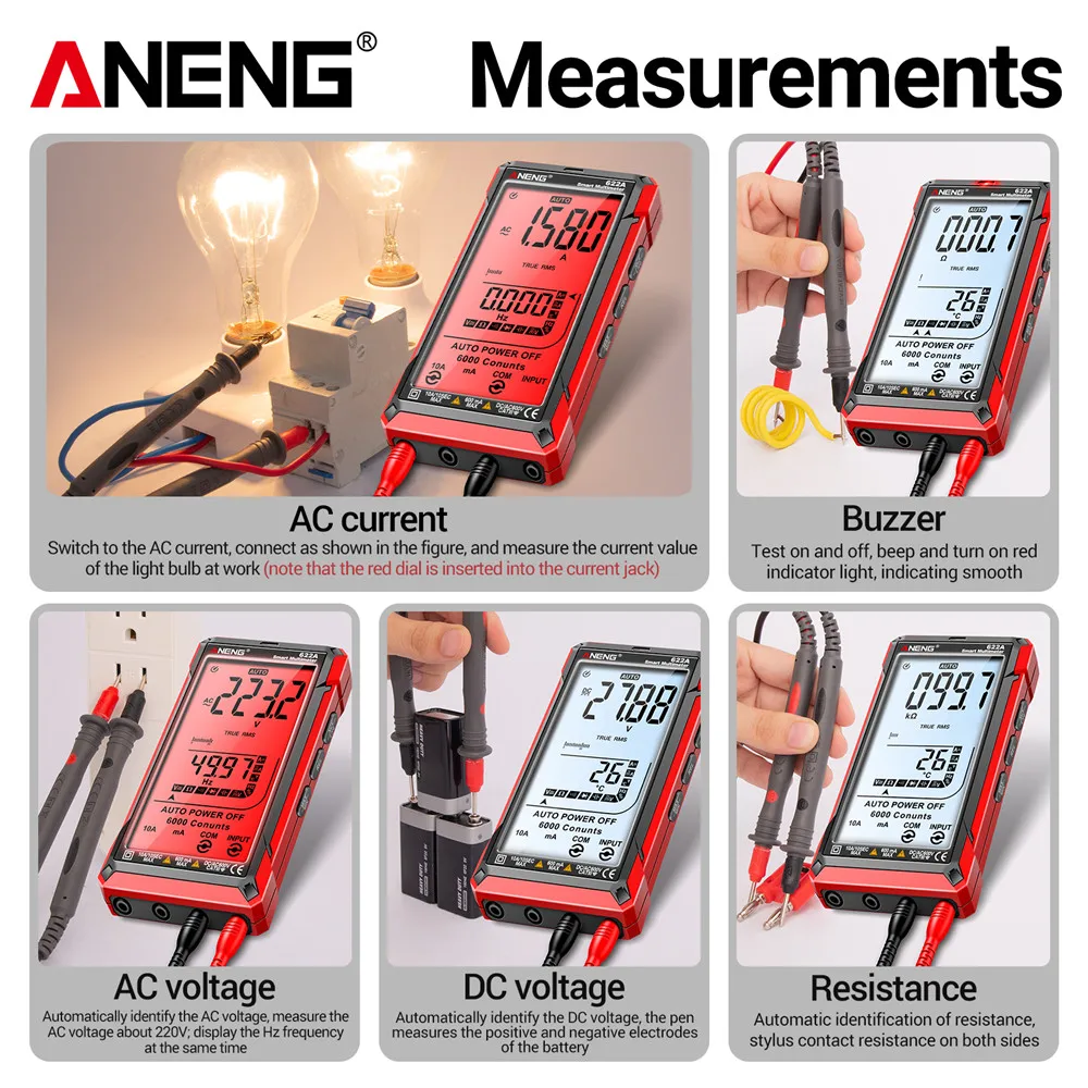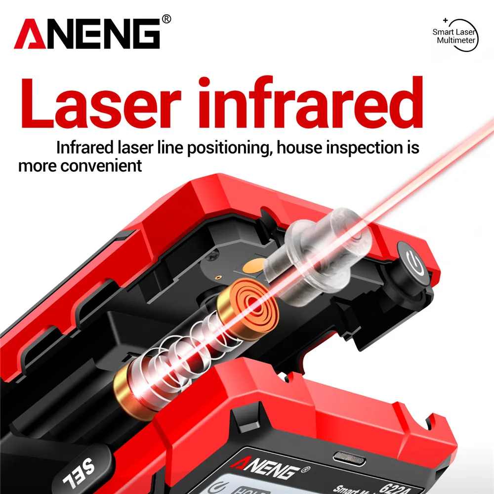 Comprar Multímetro infrarrojo láser Digital profesional ANENG 622A 6000 recuentos probador de voltaje CA herramienta de condensador de resistencia NCV de corriente CC