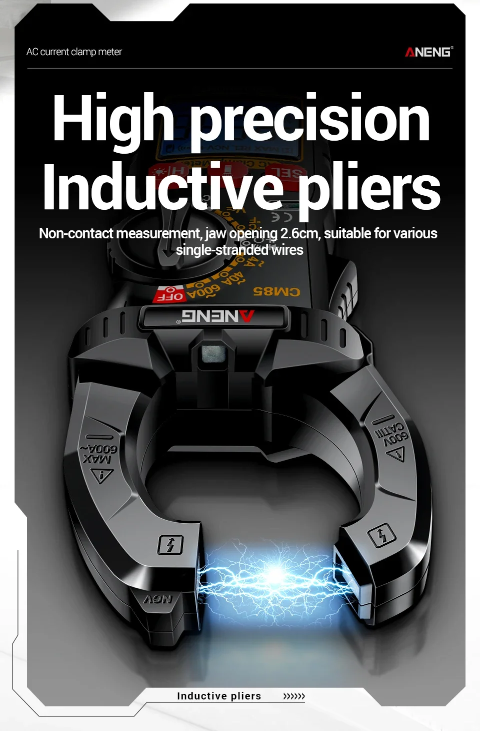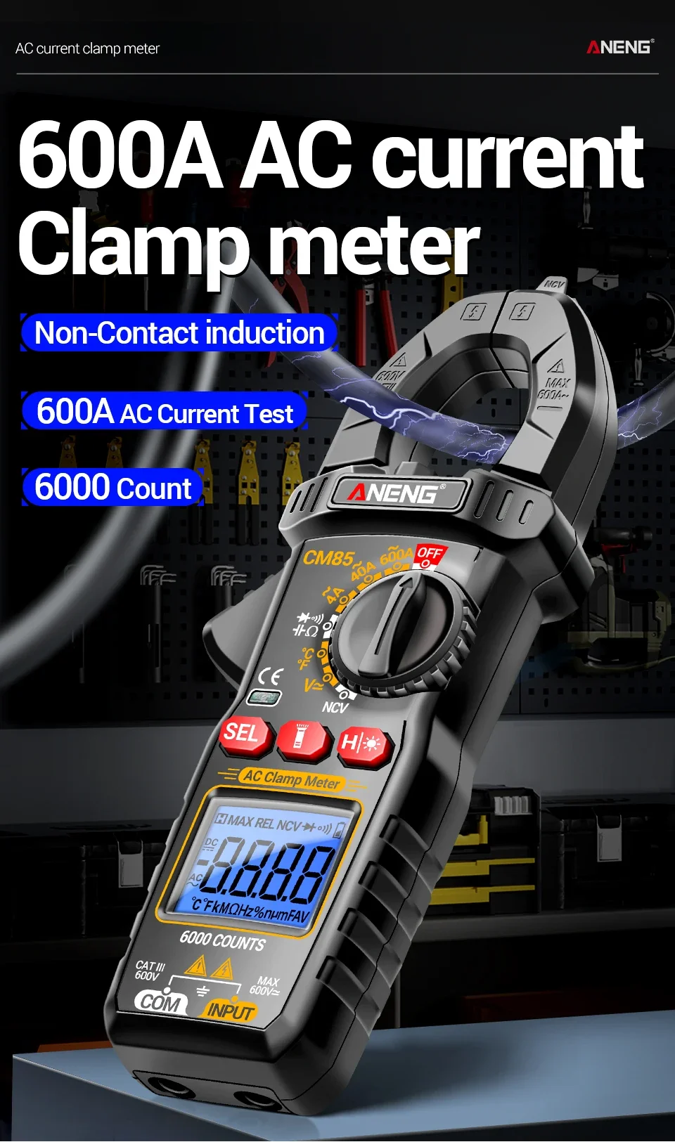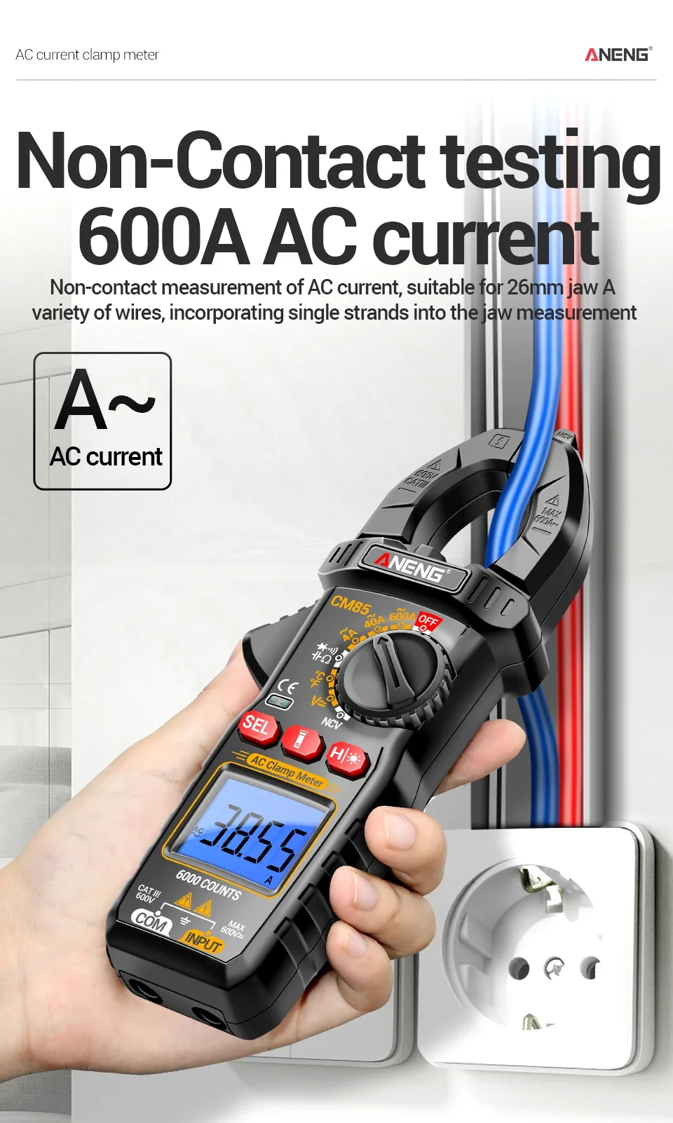 ANENG CM85 600A medidor de pinza de corriente medición de potencia sin contacto 6000 recuentos alta precisión NCV herramienta de prueba de multímetro de electricista
