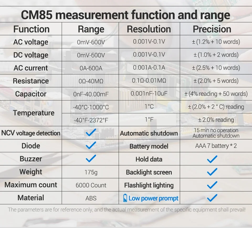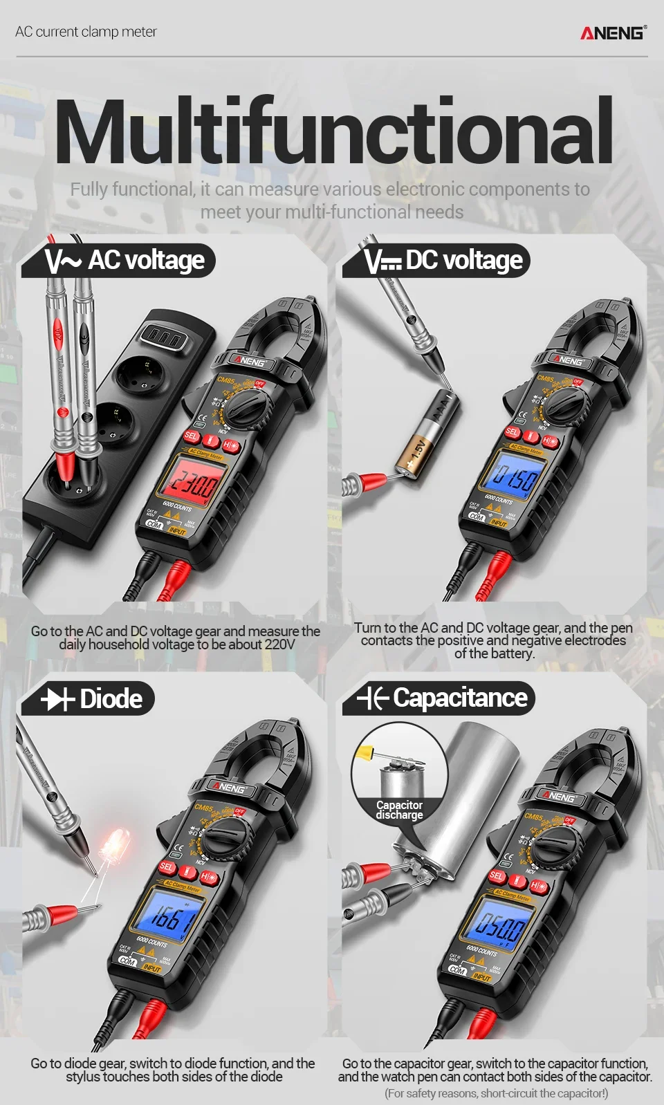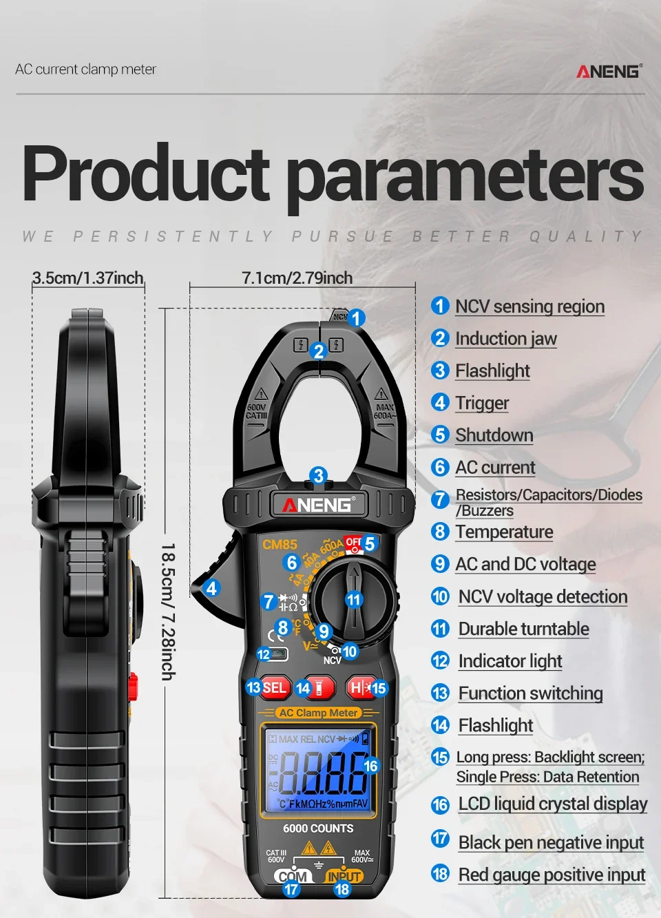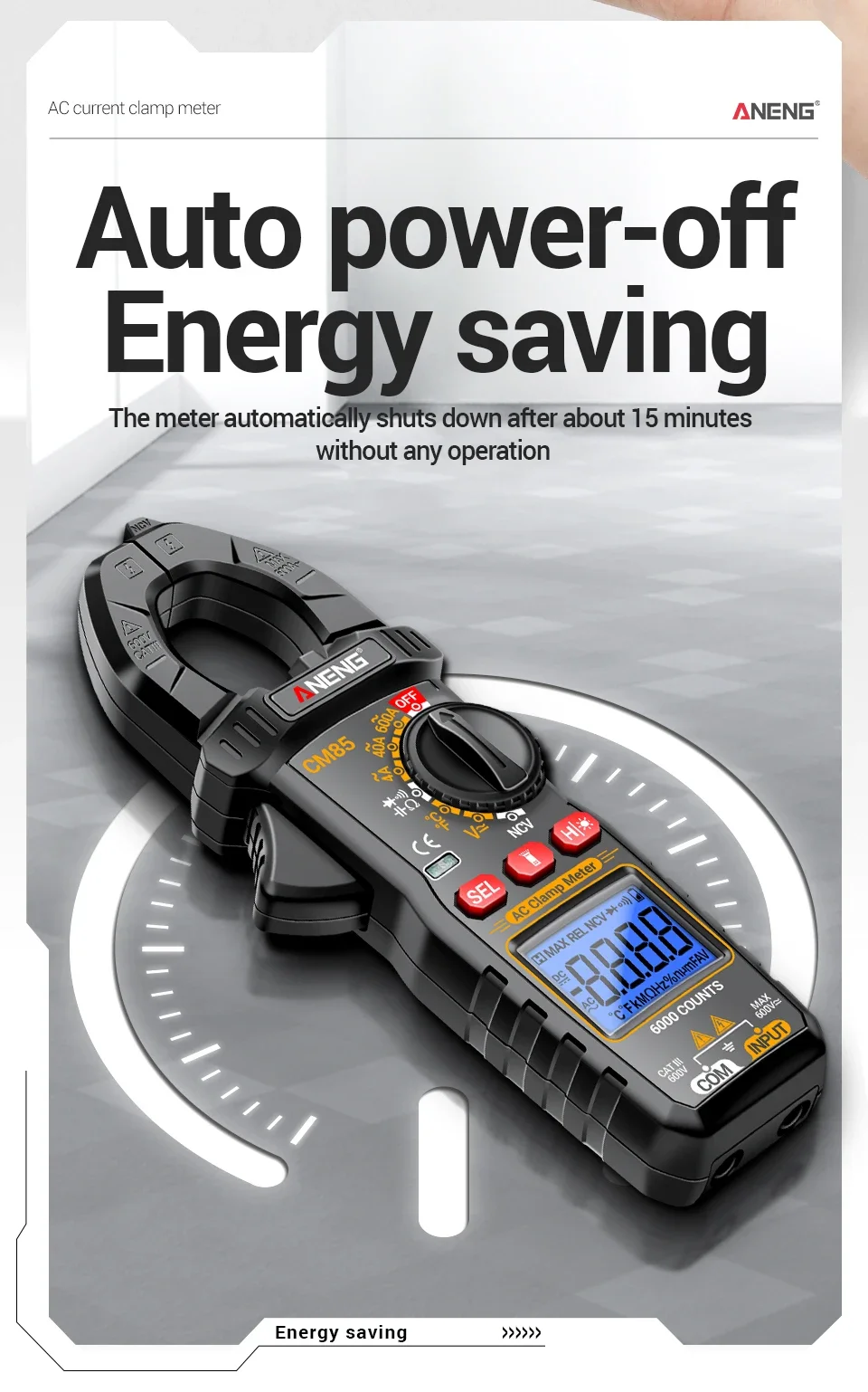 ANENG CM85 600A medidor de pinza de corriente medición de potencia sin contacto 6000 recuentos alta precisión NCV herramienta de prueba de multímetro de electricista