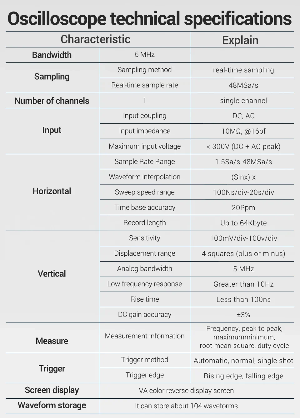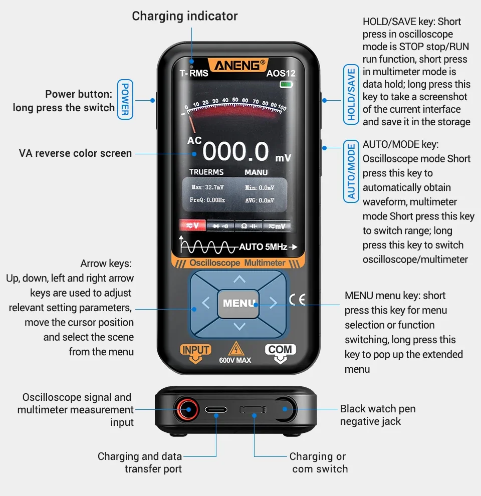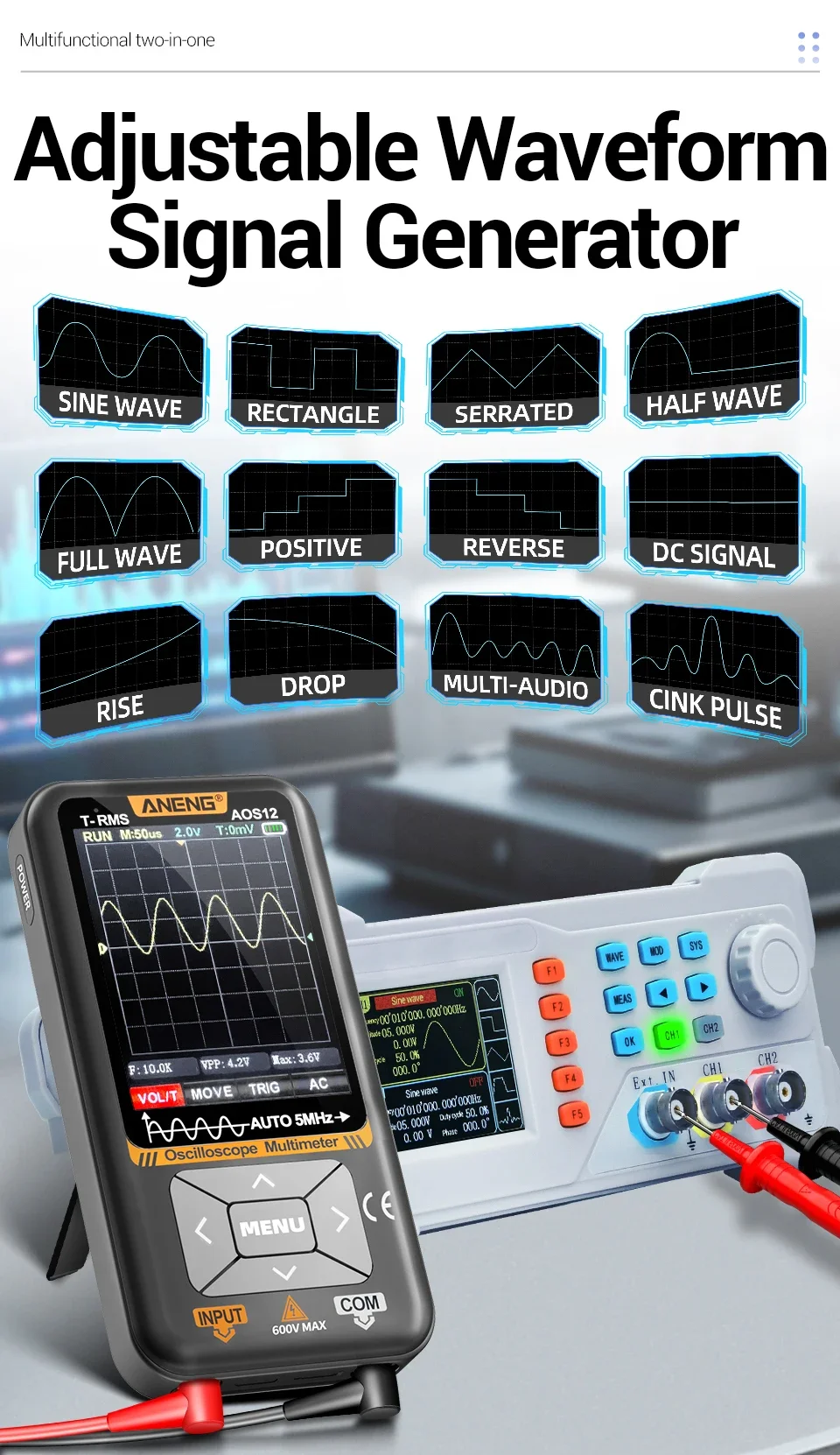 Frecuencia, pico a pico como máximo, raíz media cuadrada, ciclo de trabajo
