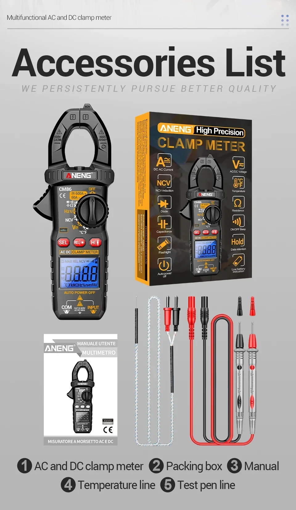 Comprar Multímetro de pinza amperimétrica Digital ANENG 600A AC/DC diodo de voltaje de corriente NCV detección de voltaje herramientas de prueba de electricista profesional