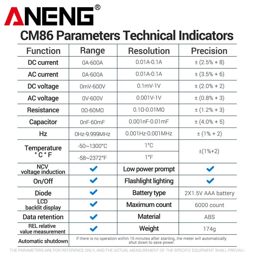 Comprar Multímetro de pinza amperimétrica Digital ANENG 600A AC/DC diodo de voltaje de corriente NCV detección de voltaje herramientas de prueba de electricista profesional