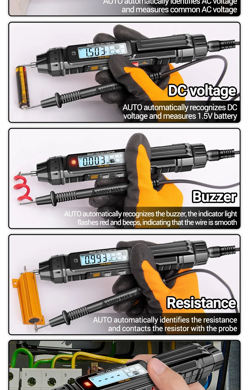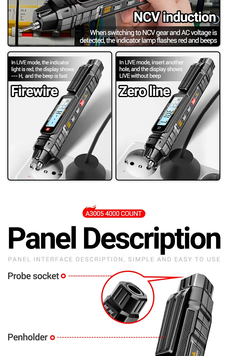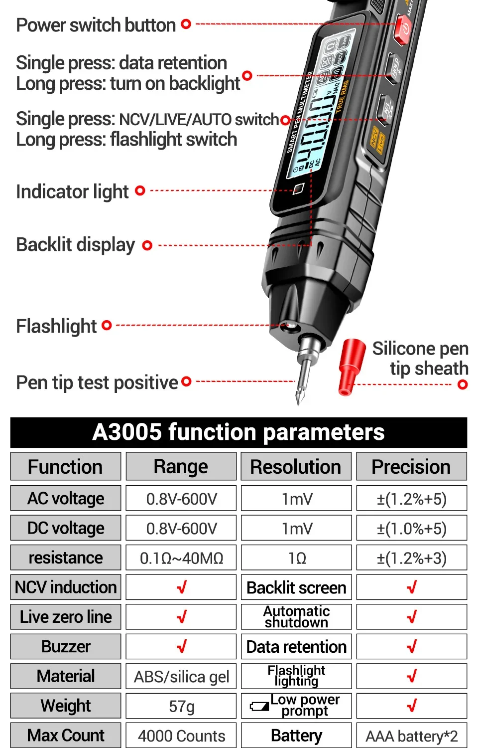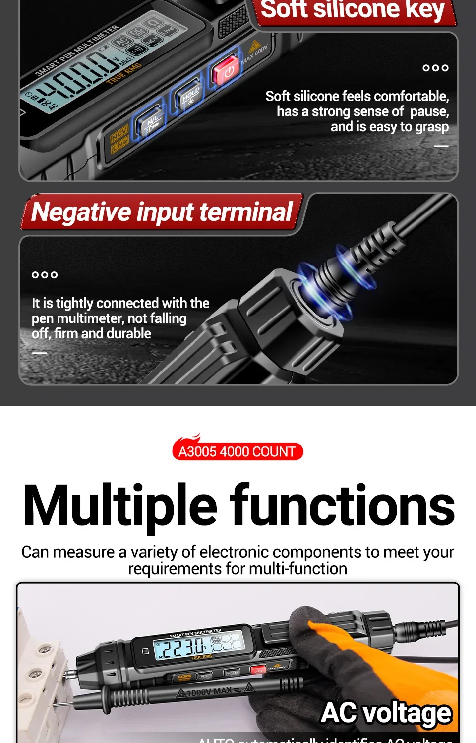 Comprar Multímetro de pluma Digital profesional ANENG A3005 voltaje CA/CC NCV probador de inducción resistencia continuidad Ohm herramientas de prueba