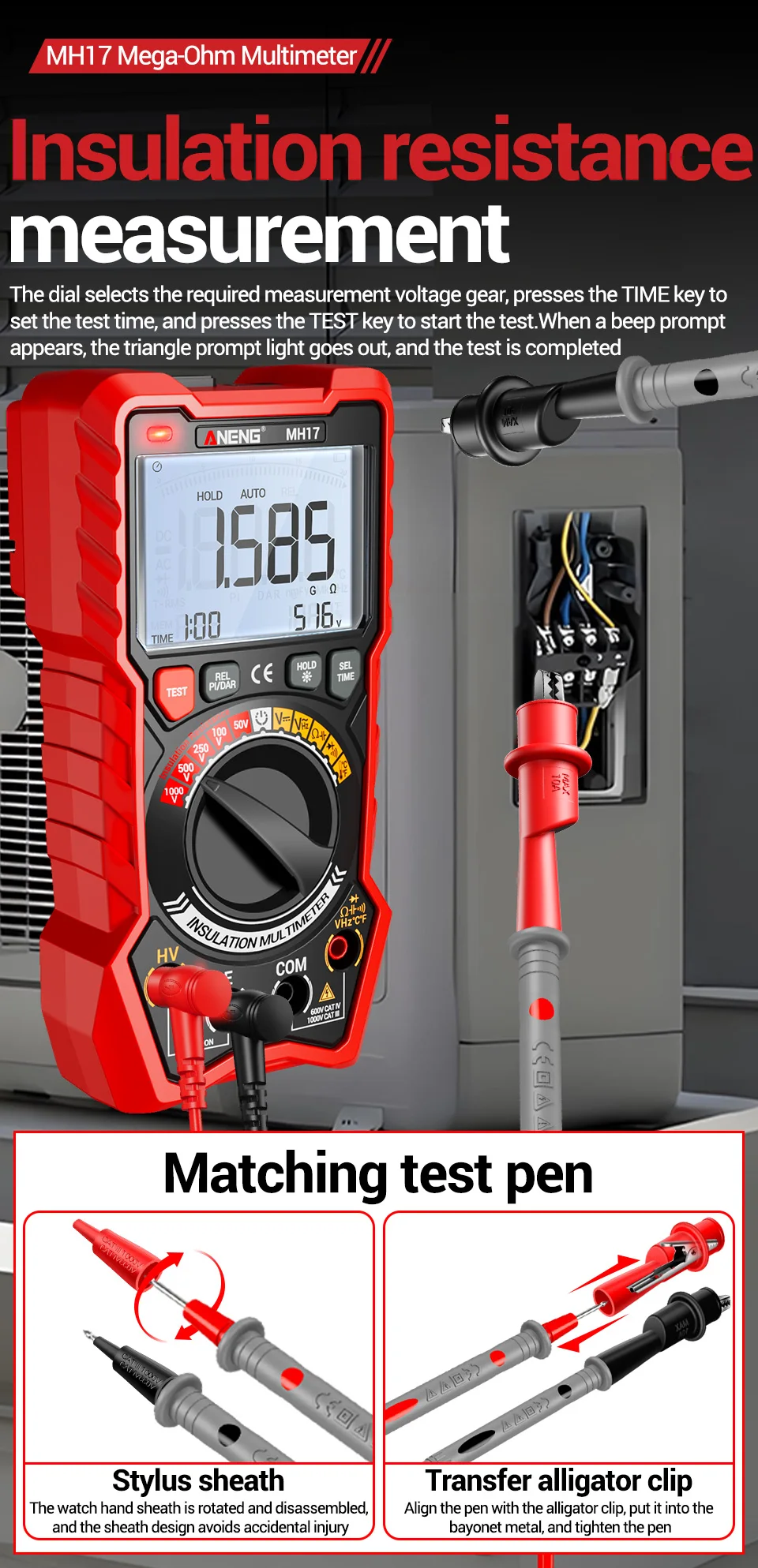 "¿Su probador de aislamiento está desactualizado?Conoce el ANENG MH17: ¡un megóhmetro y multímetro 2 en 1 que cambia las reglas del juego para electricistas y aficionados al bricolaje!