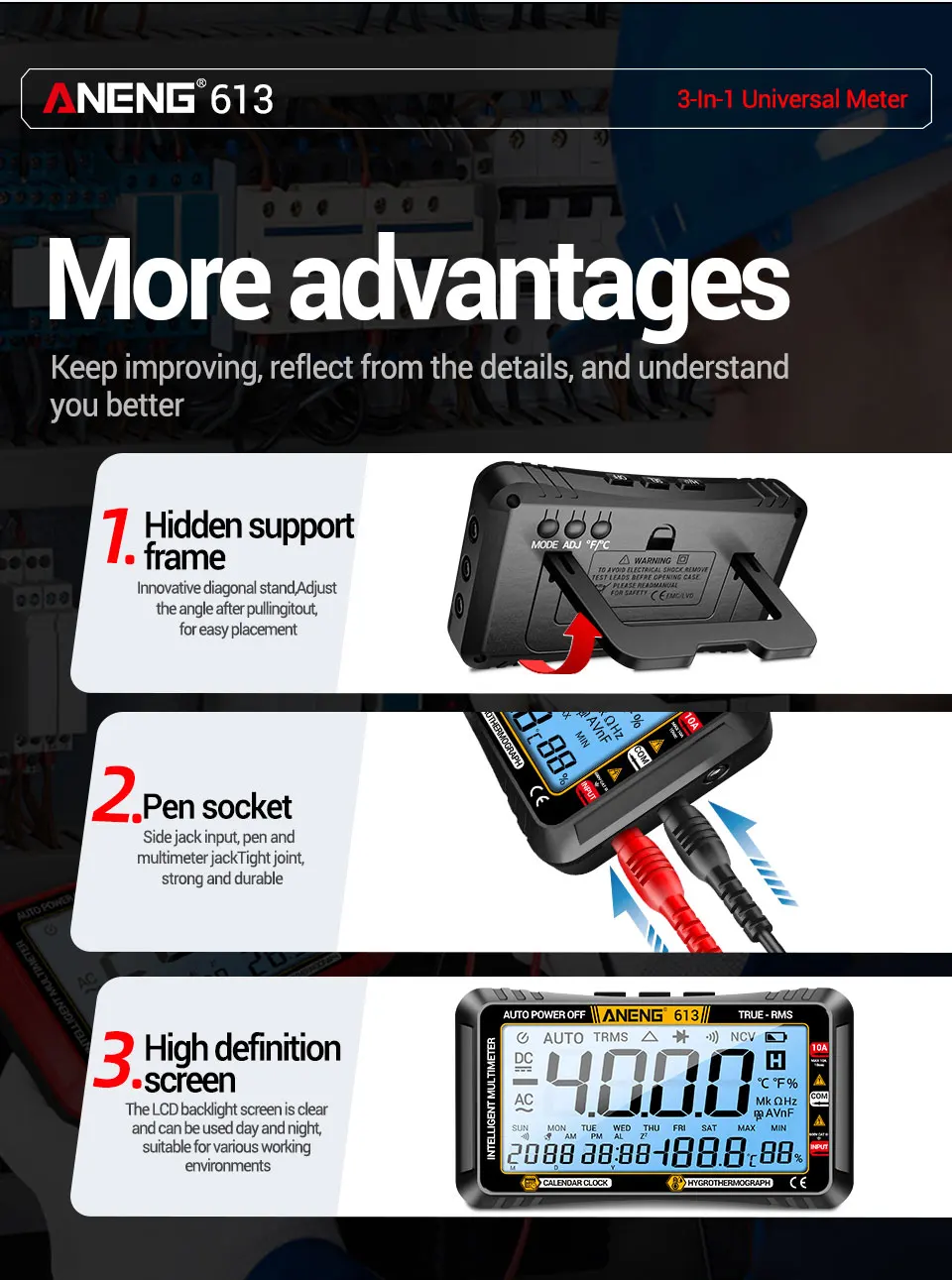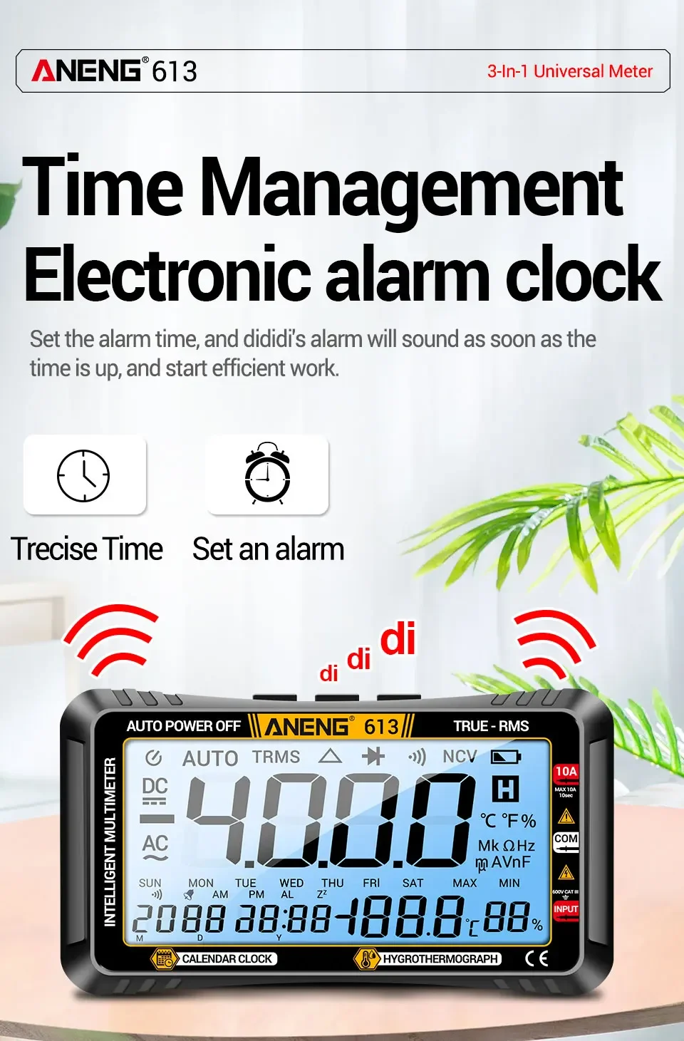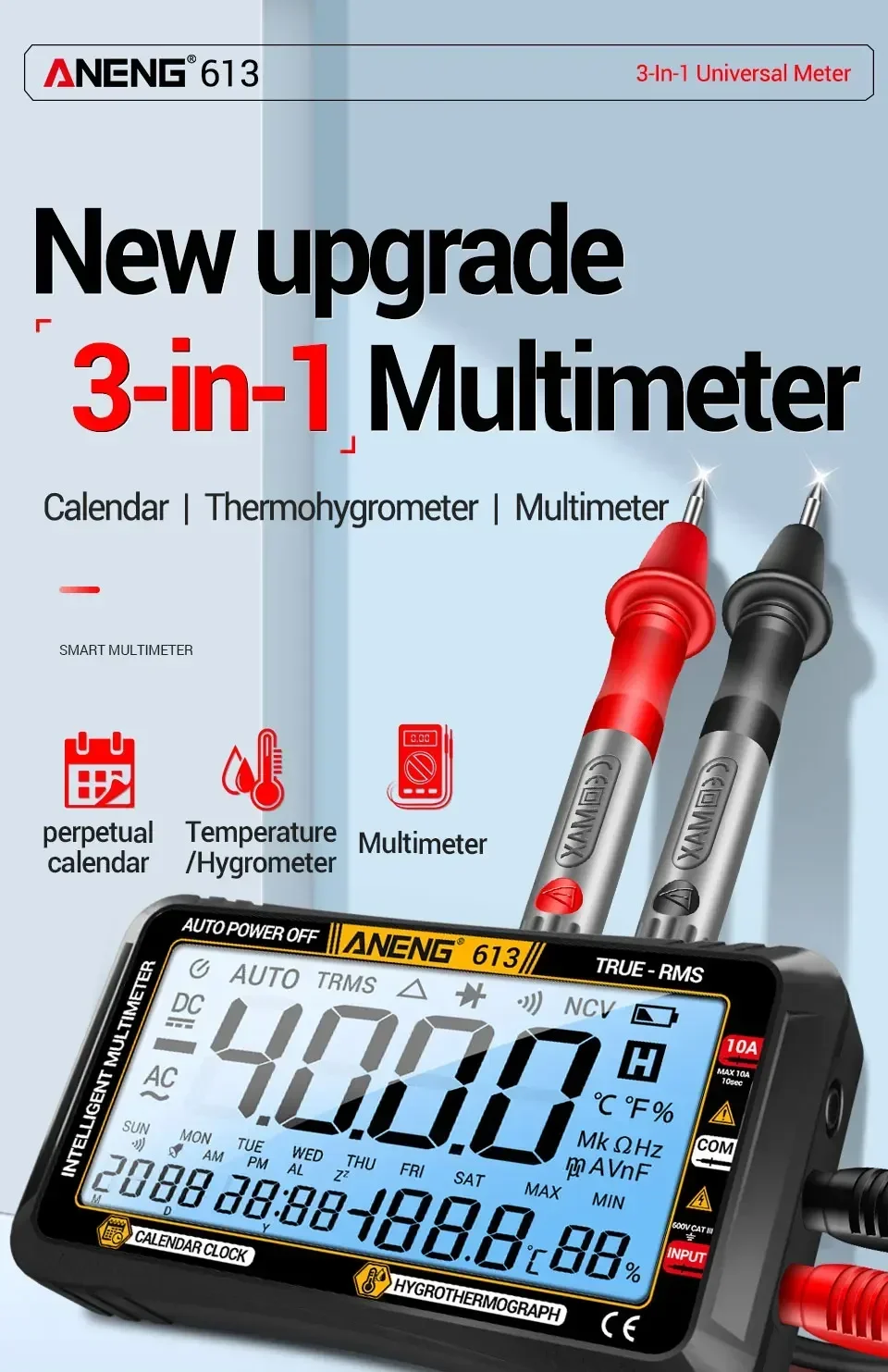 ANENG 613/612 Multímetros digitales inteligentes 3 en 1, medidor de voltaje CA, 4000 cuentas, condensador, zumbador, Hz, herramientas de prueba de calendario de resistencia