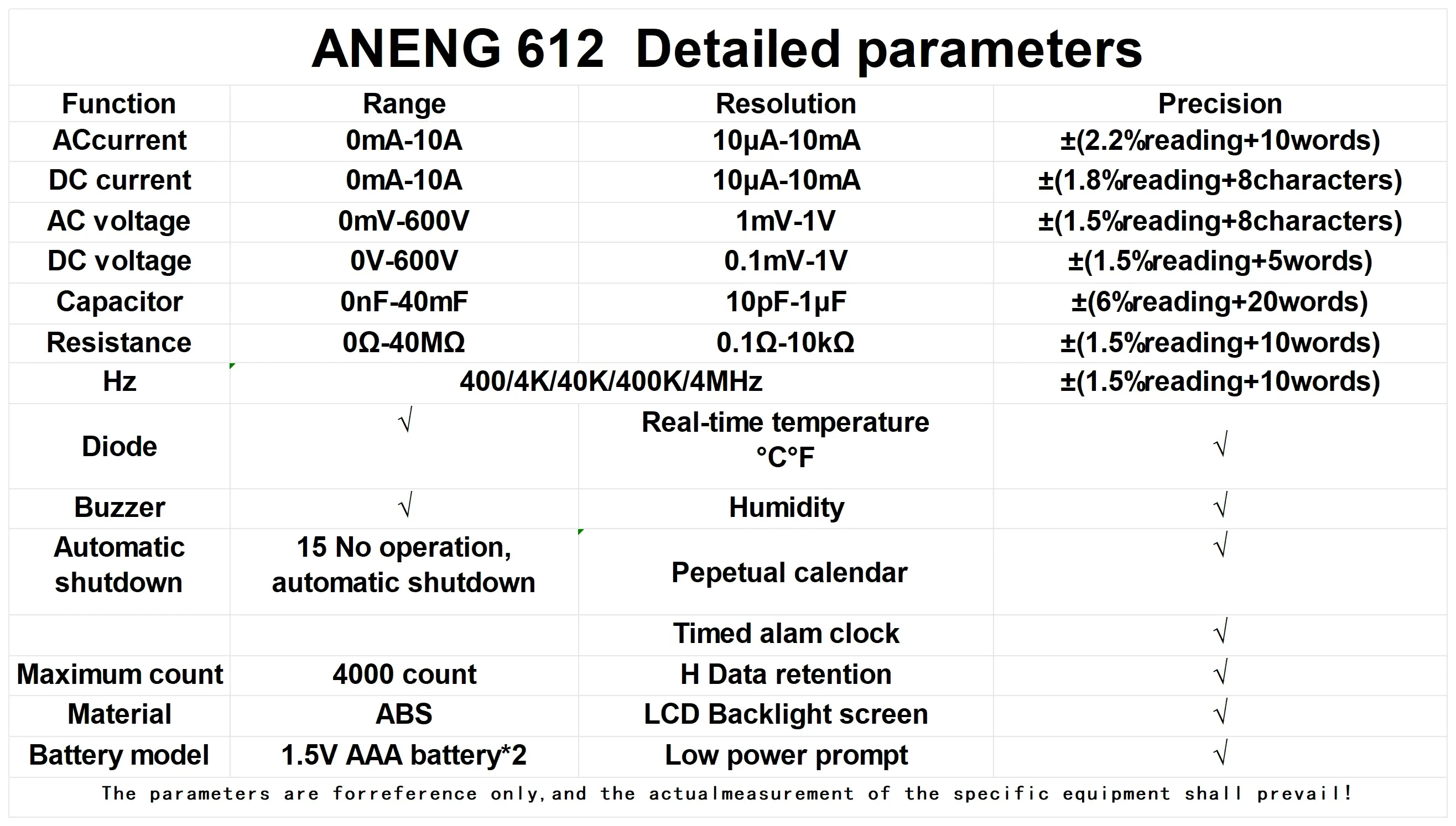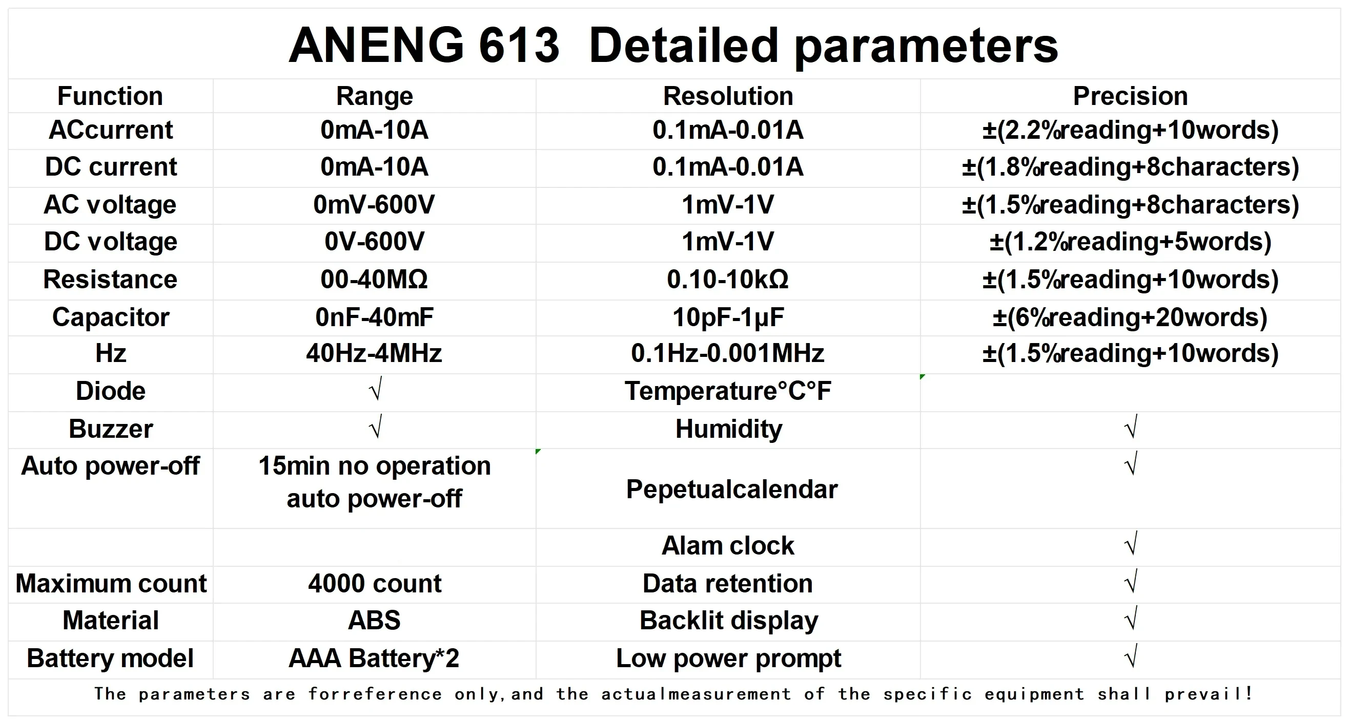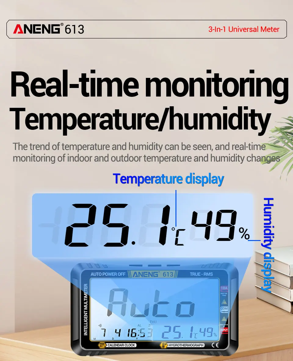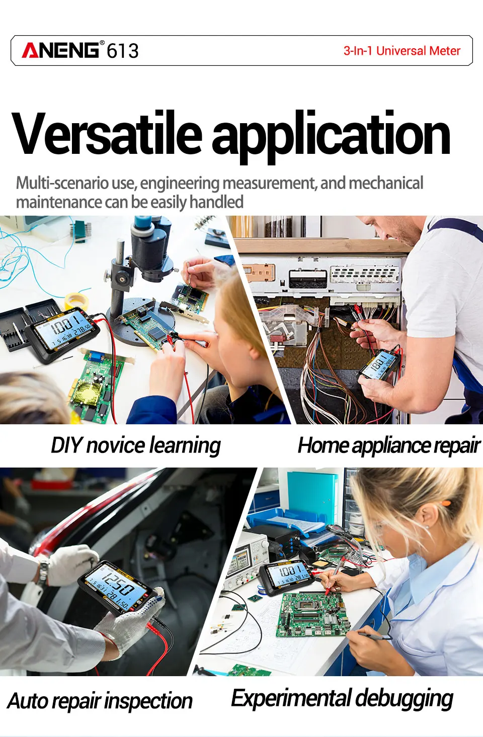 ANENG 613/612 Multímetros digitales inteligentes 3 en 1, medidor de voltaje CA, 4000 cuentas, condensador, zumbador, Hz, herramientas de prueba de calendario de resistencia