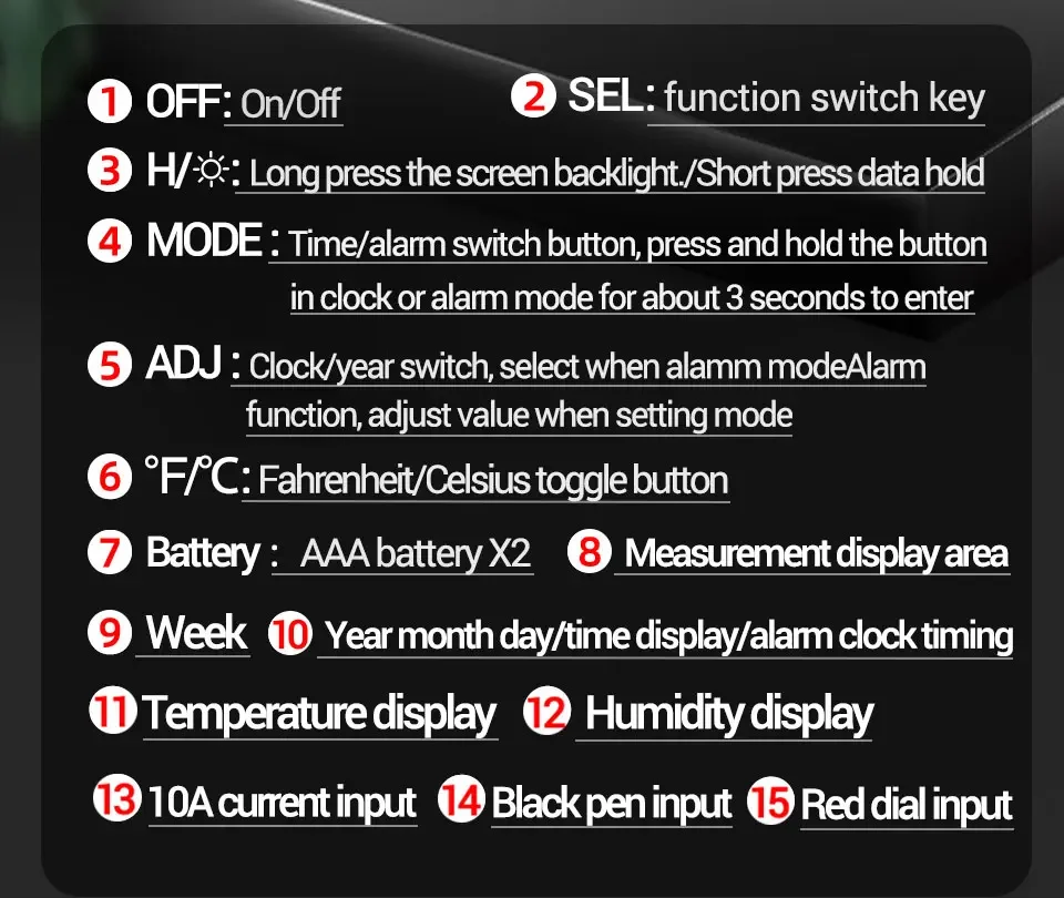3.No utilice los rangos de corriente y voltaje de forma intercambiable para evitar daños al instrumento.