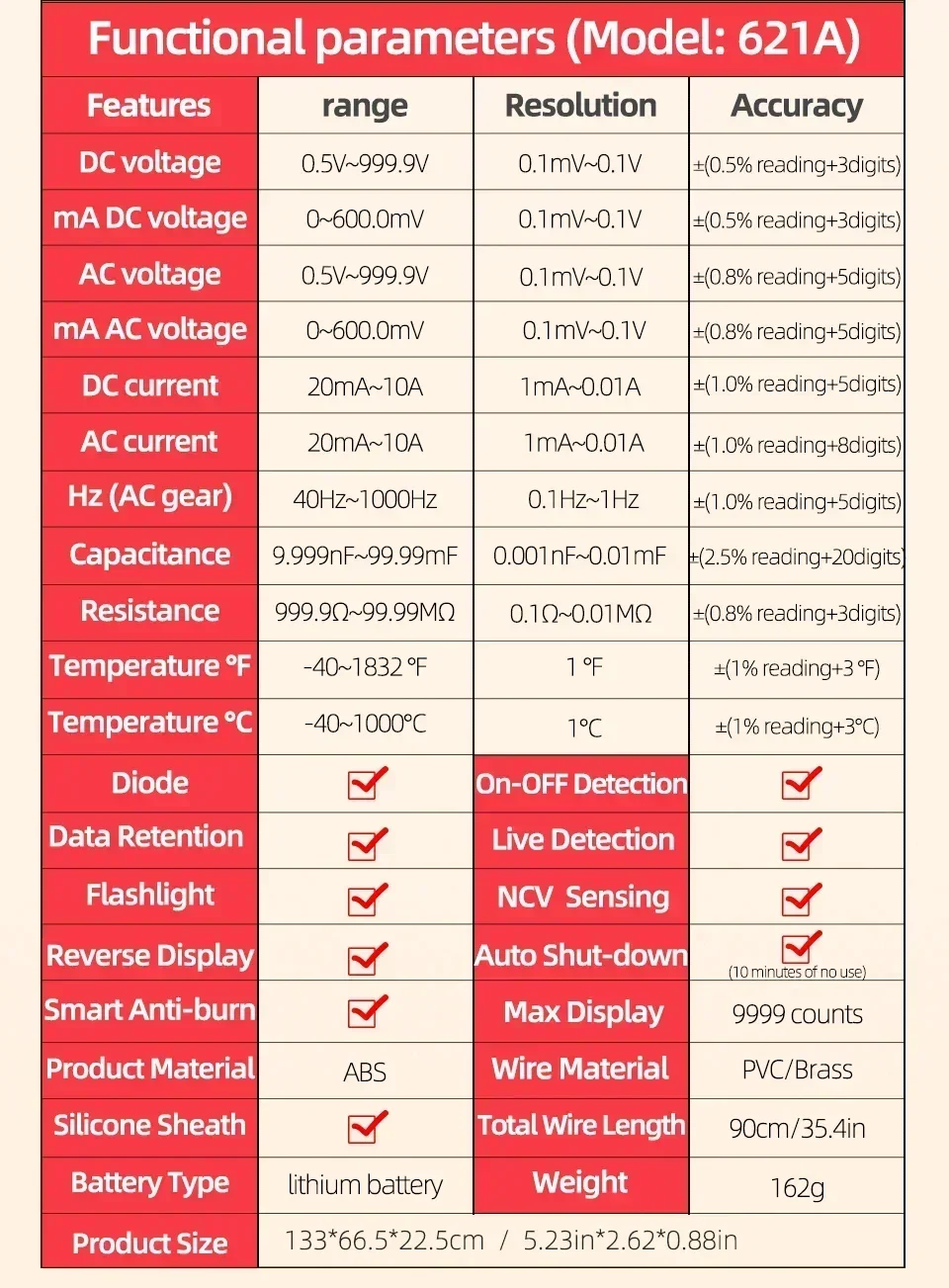 621A Parámetros del producto