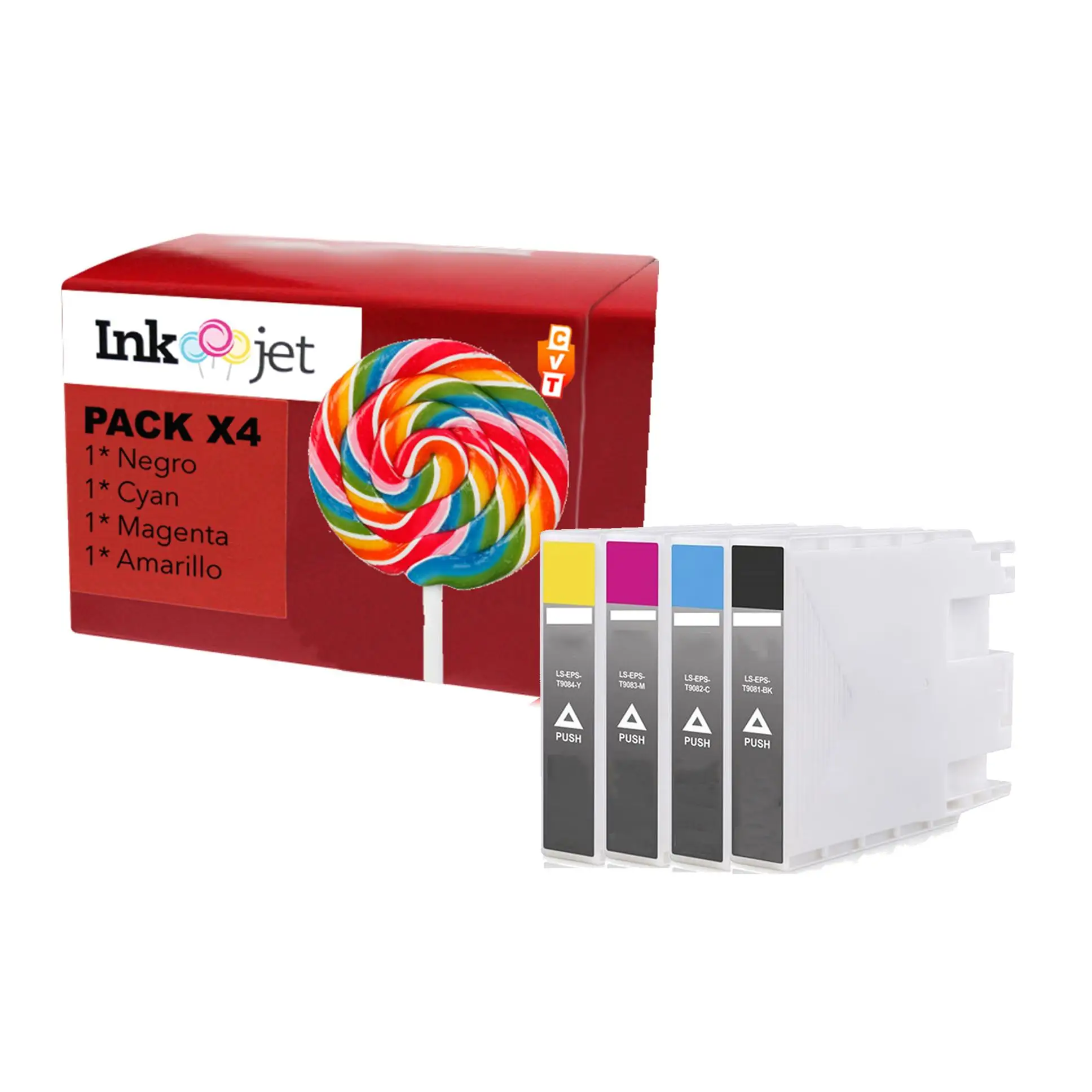 MultiPack de 4 cartuchos de tinta genéricos Epson T9081 / T9082 / T9083 / T9084 de alta calidad.