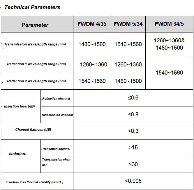Con el fin de garantizar alta calidad, estabilidad y fiabilidad, el tipo de filtro WDM selecciona el filtro de película con un excelente rendimiento. El filtro WDM puede realizar la combinación y división de señales ópticas de dos ventanas de comunicación, doblar la capacidad de transmisión de una sola fibra óptica y realizar comunicación de fibra bidireccional. Es ampliamente utilizado en Actualización de fibra óptica, expansión o introducción de nuevos servicios integrales, como radio y televisión, telecomunicaciones, Internet, etc.