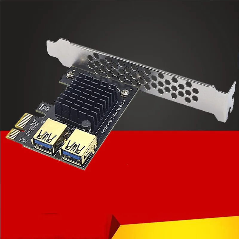Multiplicador dorado PCI Express tarjeta elevadora PCIE PCI-E 1 a 2 Hub USB 3,0 PCI Express X16 adaptador 1X 16X para minero de minería BTC Bitcoin