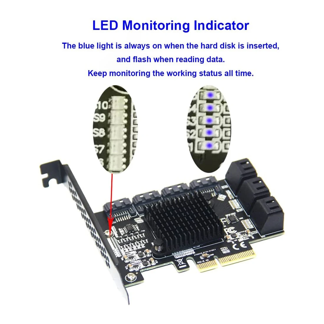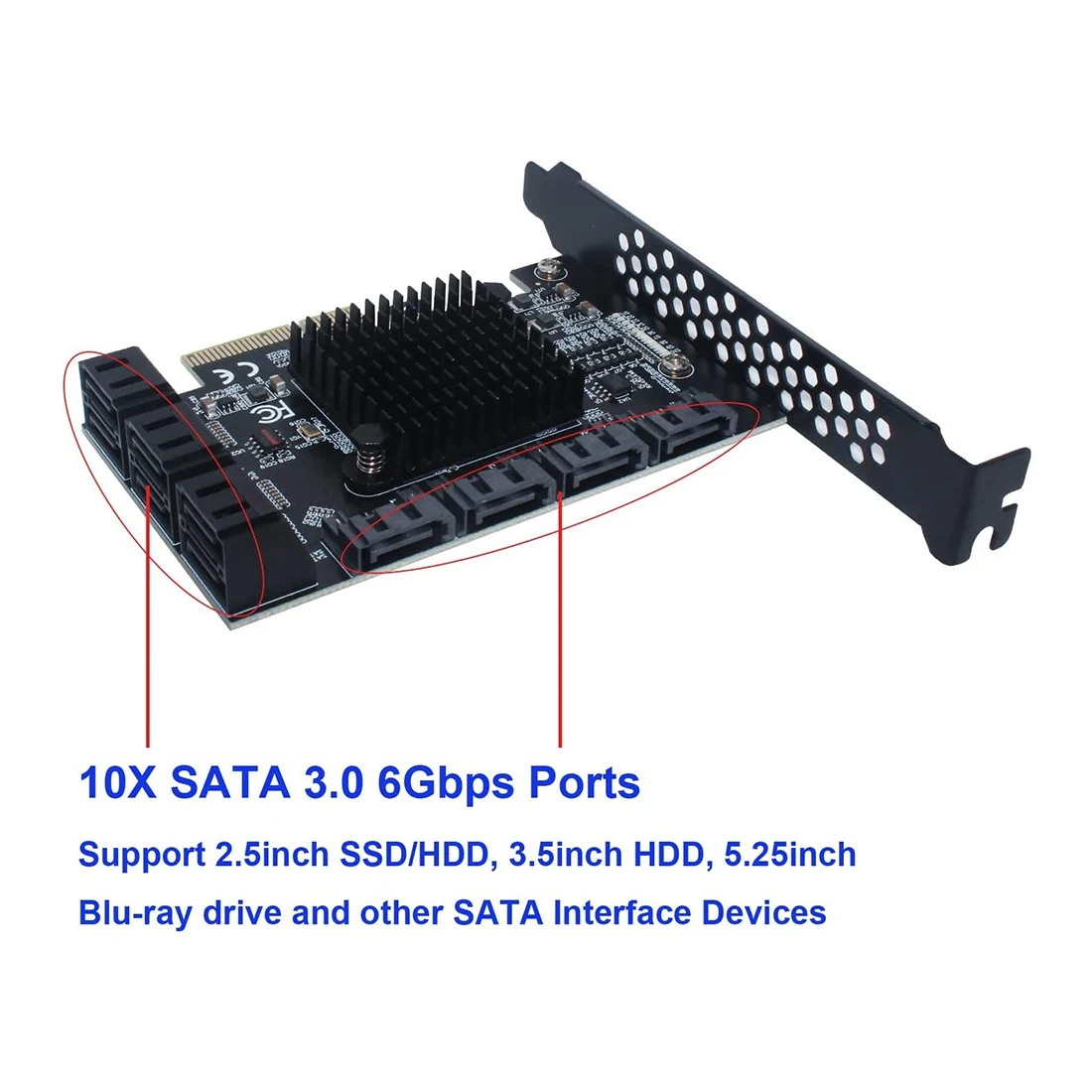 Comprar Multiplicador Pci Express de 1X a 10 puertos, tarjeta de expansión SATA, PCI Express X16 extensor, SATA 3,0, 6Gbps, compatible con HDD SSD