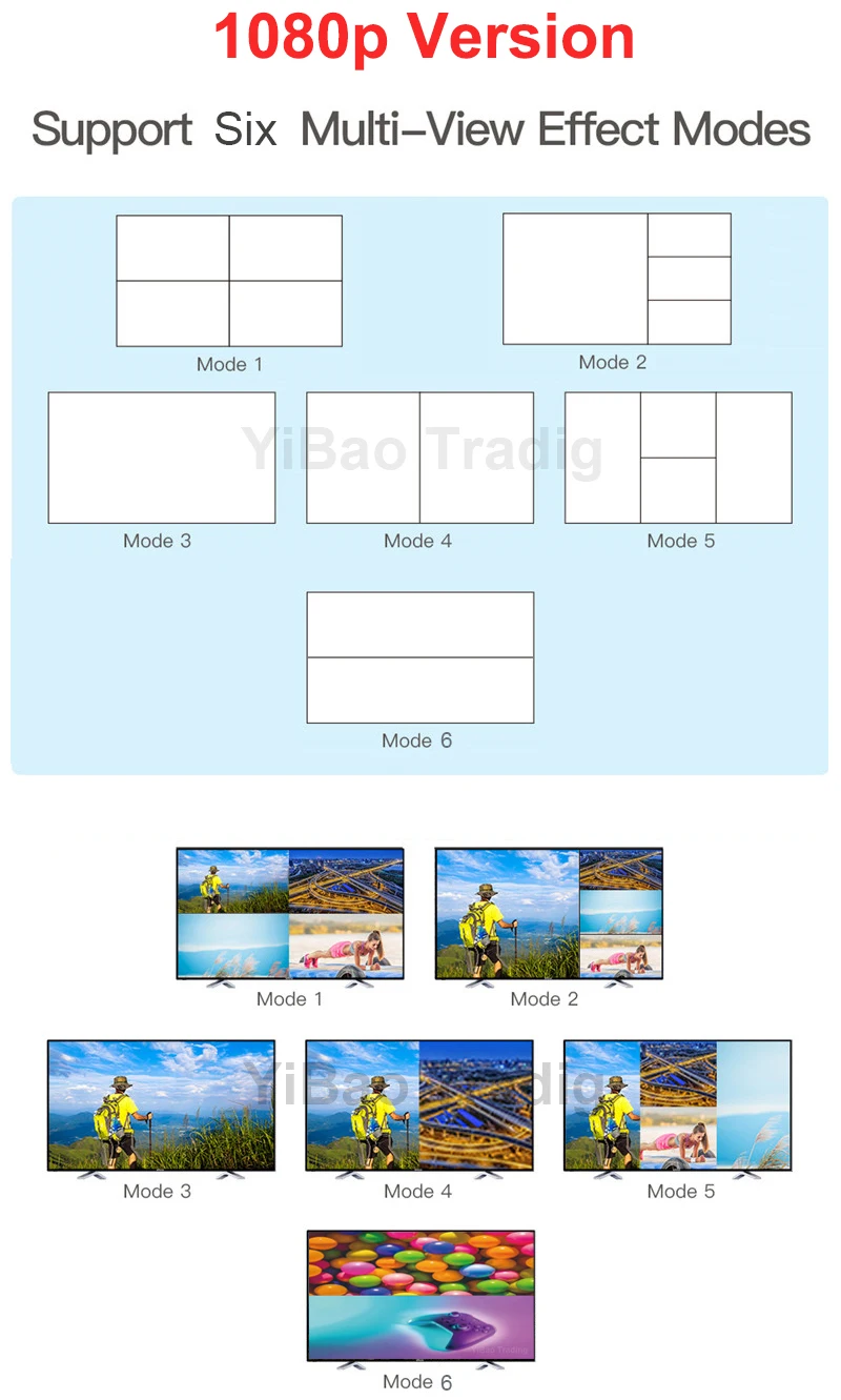 2. La Versión 4K admite 7 modos de visualización; la versión 1080P admite 6 modos;