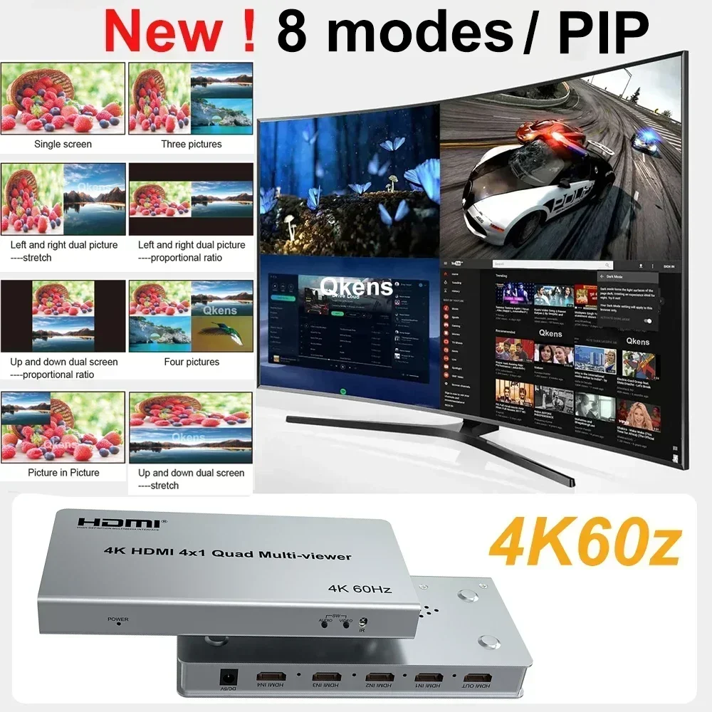 Nuevo 4K 60Hz HDMI 4X1 Quad Screen Multiviewer