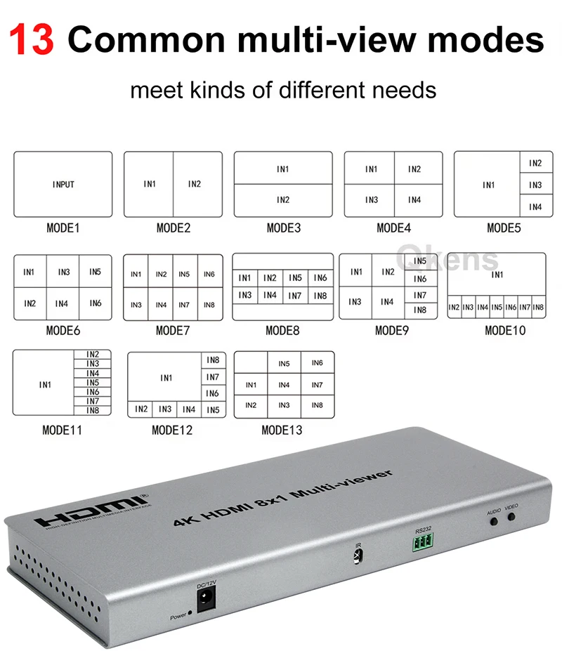 * Soporta 8 entradas HDMI, una salida HDMI;