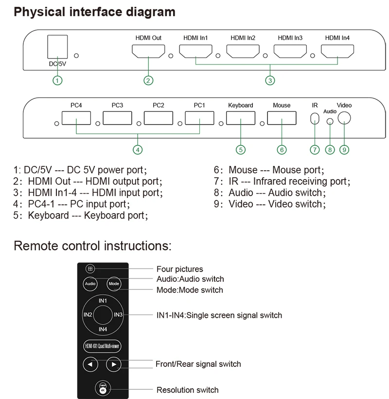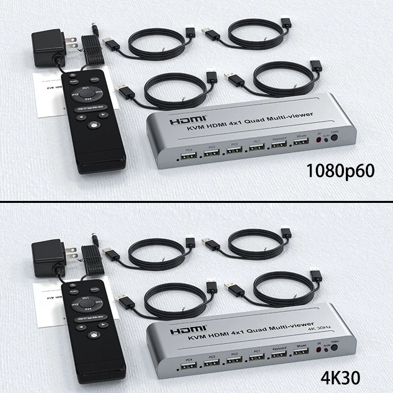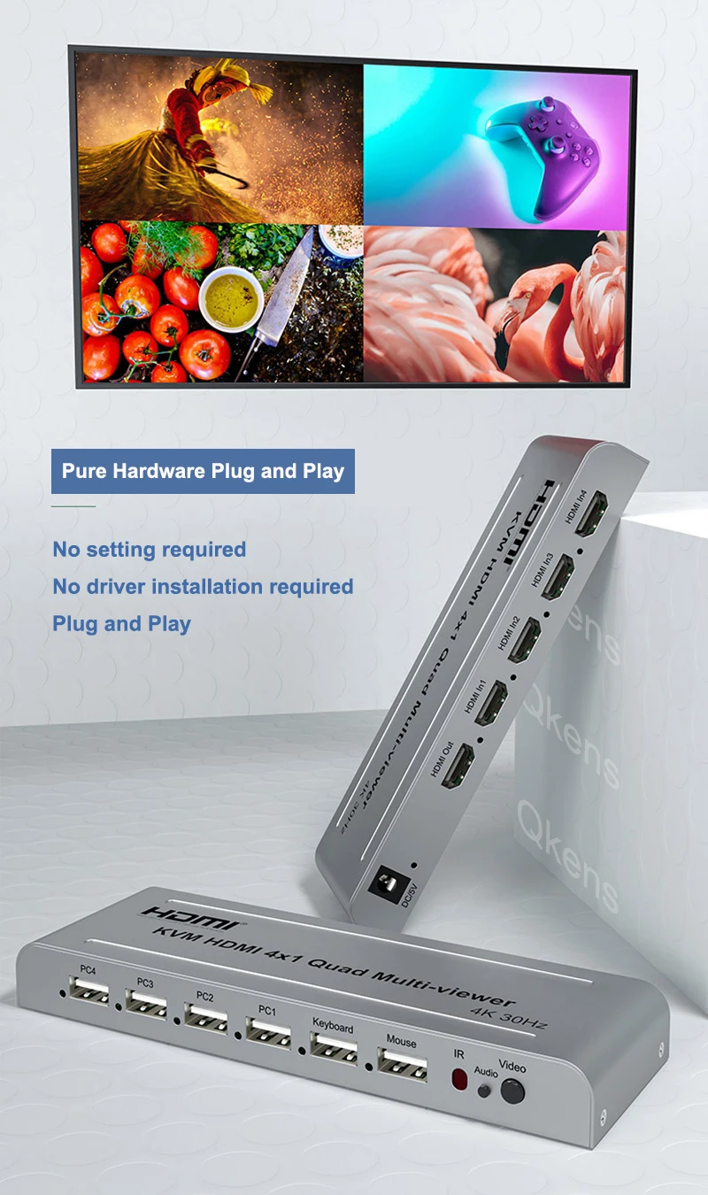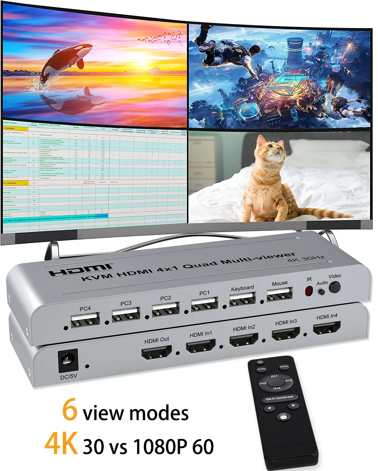 1. KVM HDMI 4x1 cuádruple multivisor 1 en 1,