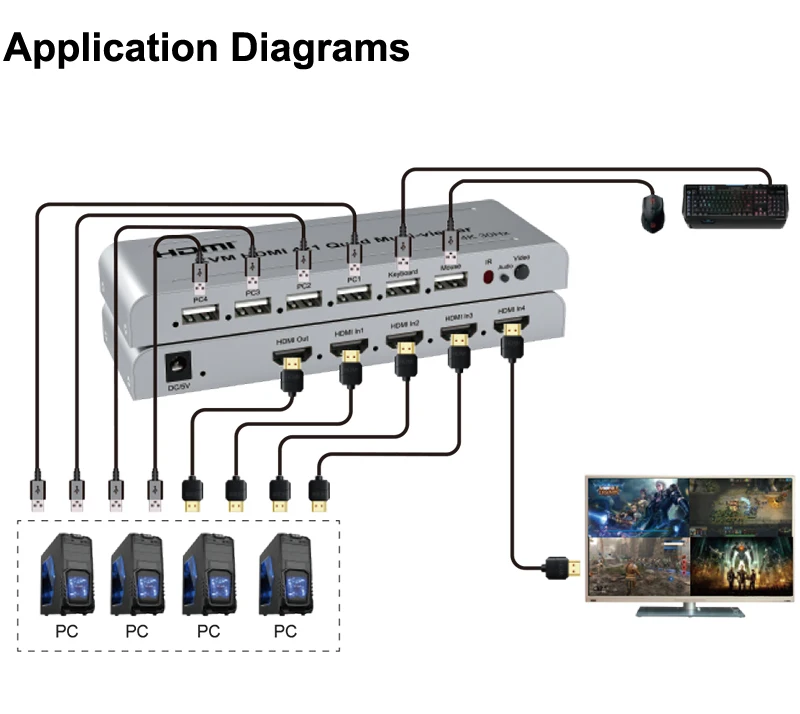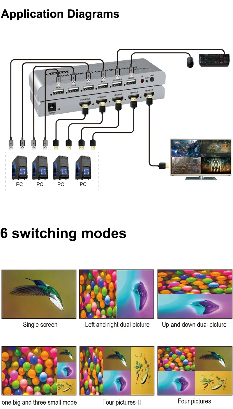 * Admite 4 entradas HDMI, 1 salida HDMI;