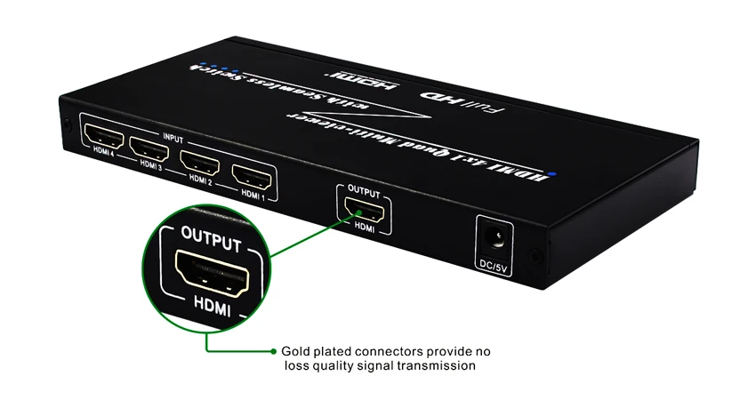 Soporta 4 entradas HDMI, 1 salida HDMI