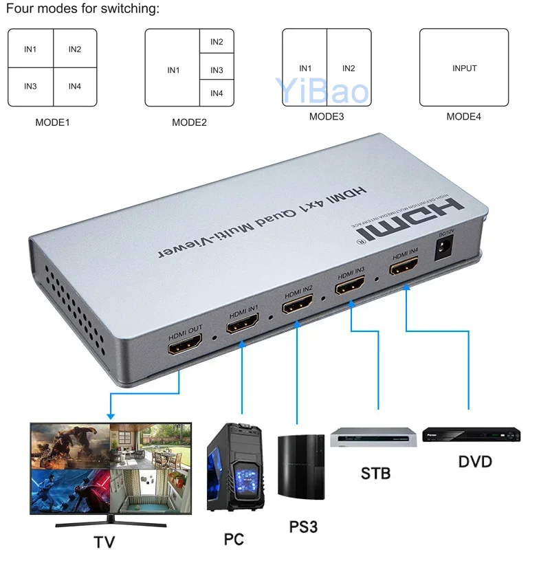 Este HDMI 4x1 Quad Multi-VIEWER es un alto rendimiento con cuatro segmentación de pantalla HD y sin problemas