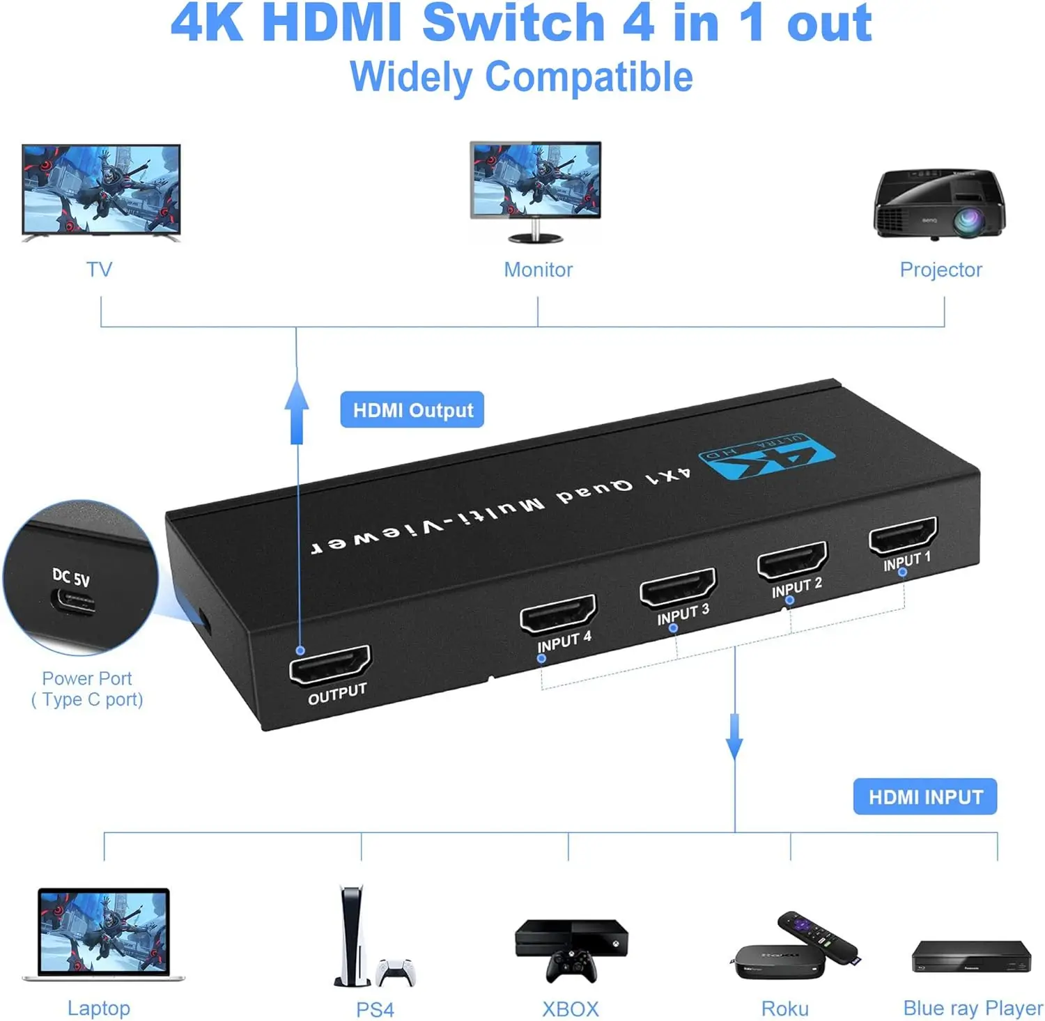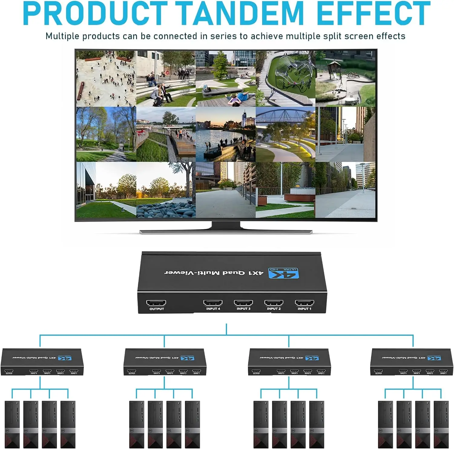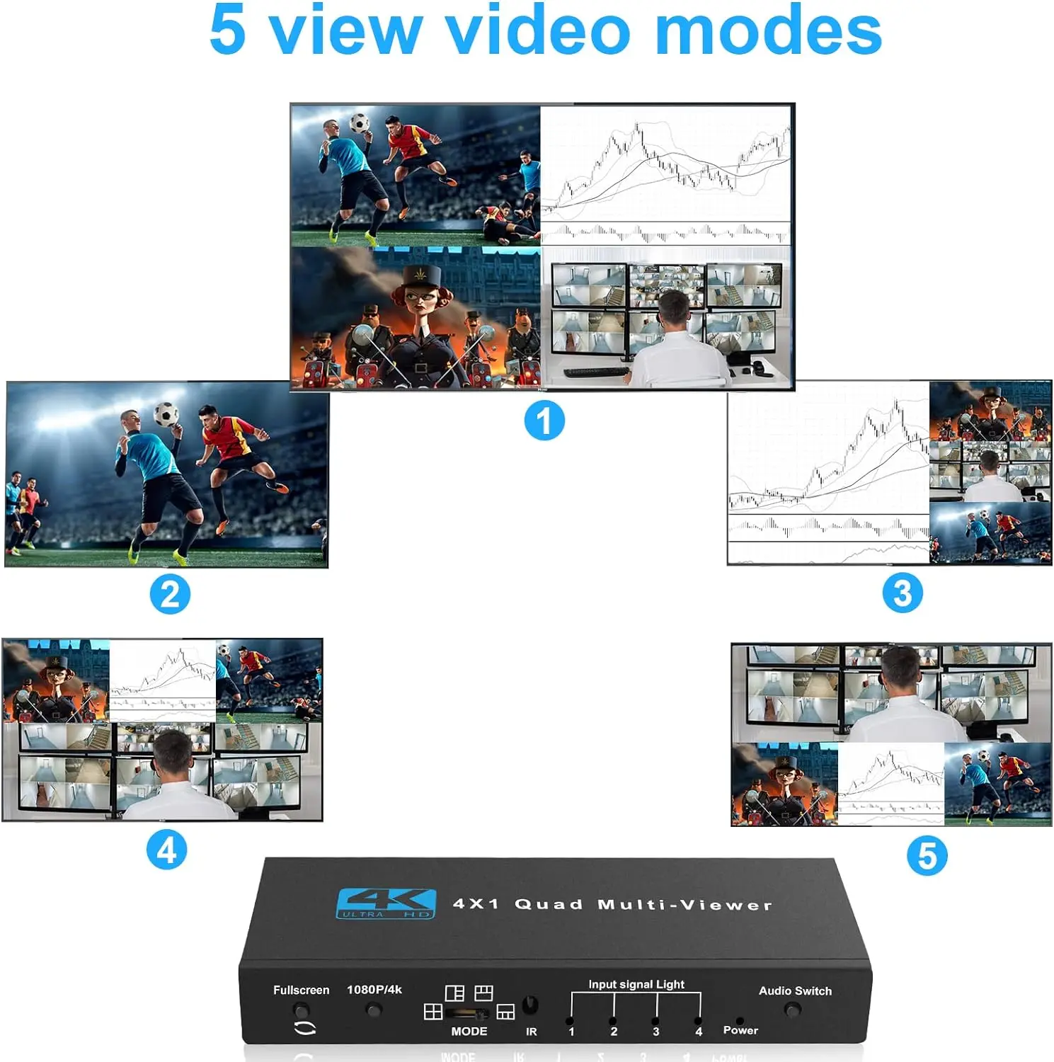 Comprar Multivisor de pantalla cuádruple 4K HDMI, 4x1, 1080P, salida 4 en 1, conmutador múltiple HDMI, 5 modos de pantalla para cámara, portátil, PC, TV