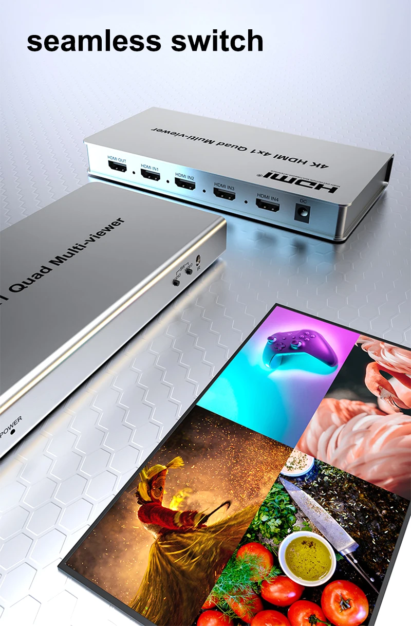 Este multivisor 4K HDMI 4x1 Quad es un alto rendimiento con cuatro segmentación de pantalla HD y sin problemas