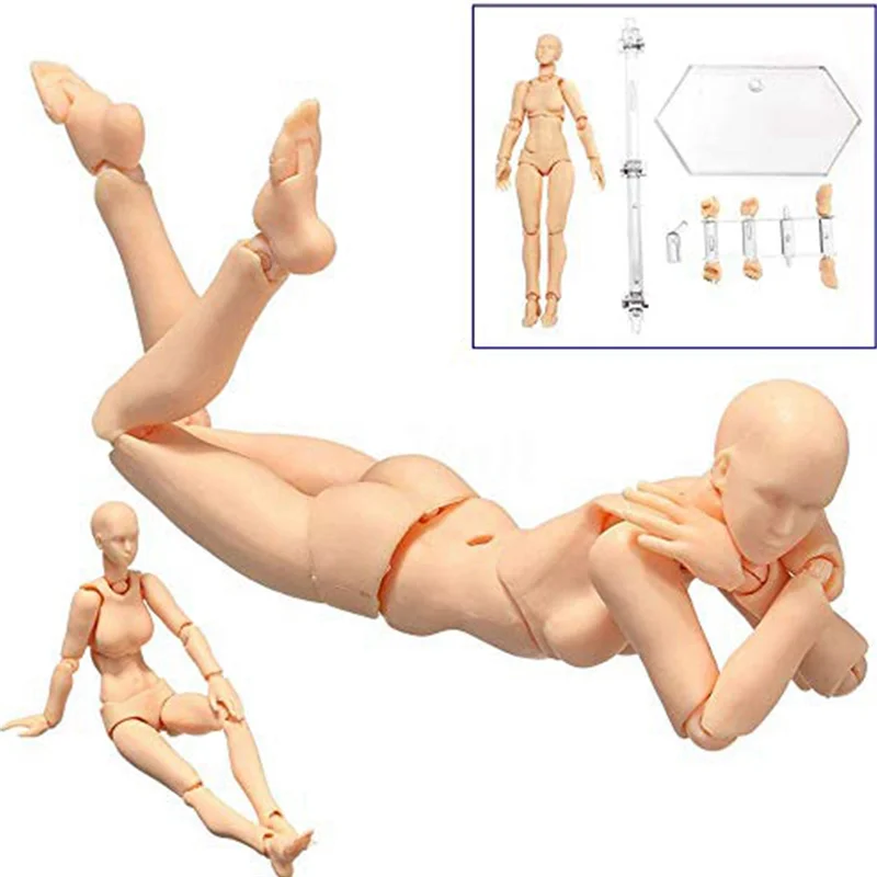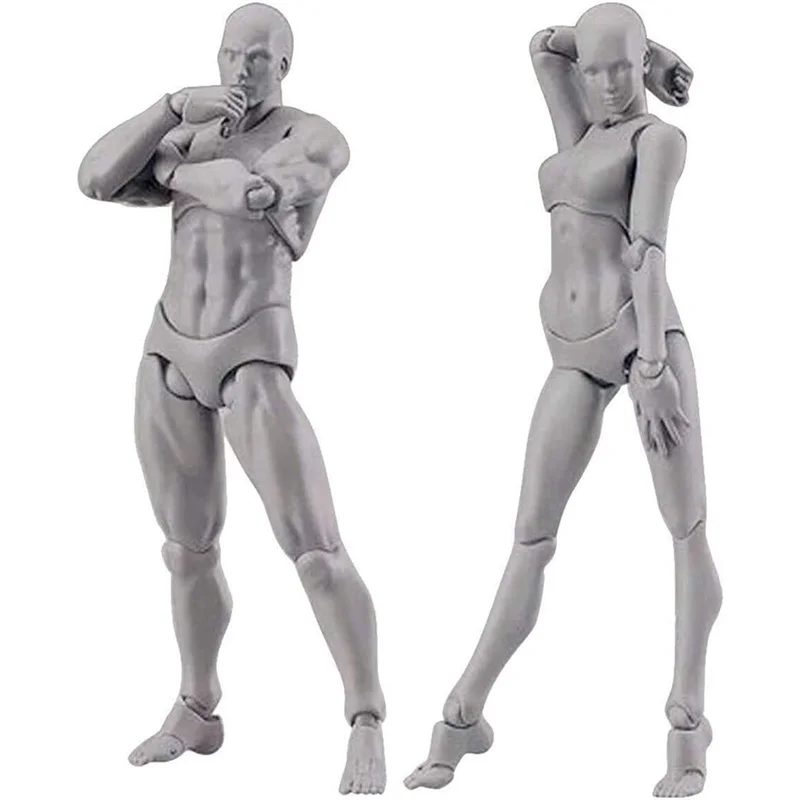 Comprar Muñeca de cuerpo articulada para hombre y mujer, maniquí articulado con cabeza de bloque para artistas, conjunto de dibujo, color gris