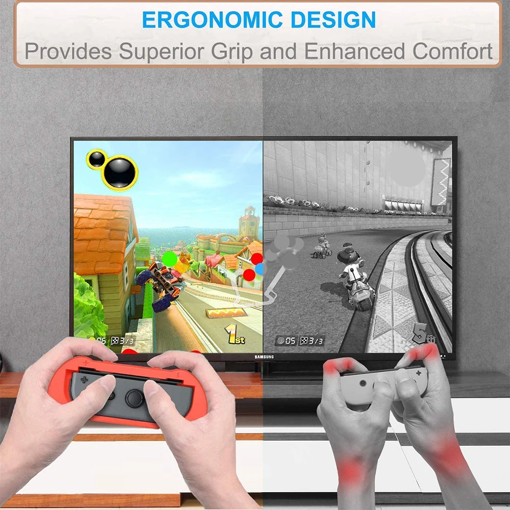 【 Última versión 2 en 1 】-Diseño de última versión 2020 para pulsera de interruptor y correa/agarre para controladores Joy-Con. Este artículo nace para ser la mejor opción para los amantes del Just Dance y otros juegos multijugador. Retire Las correas elásticas, obtendrá un par de agarres cómodos para Nintendo Switch Joy-Cons. Te permite jugar a Mario Kart y Overcook2.