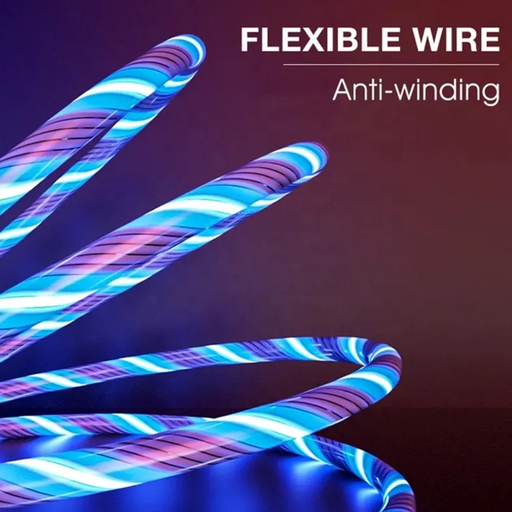 MVQF-Cable de carga rápida USB tipo C para iPhone, cable de carga rápida, cable LED RGB con luz LED, transferencia de datos
