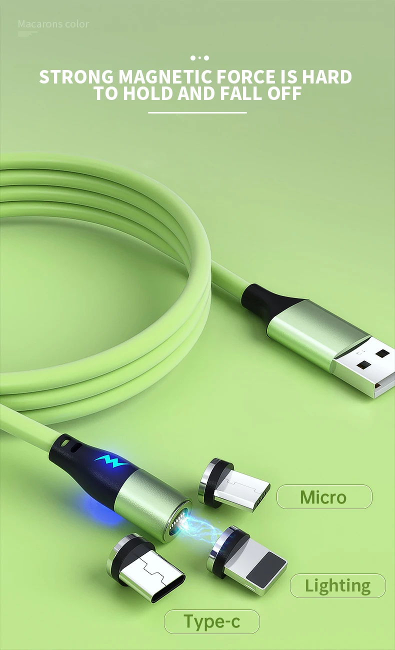 MVQF-Cable de datos magnético 3 en 1, Cable Usb de silicona de carga rápida 5A para Iphone 13 14, Huawei, Samsung, Cable USB para Android