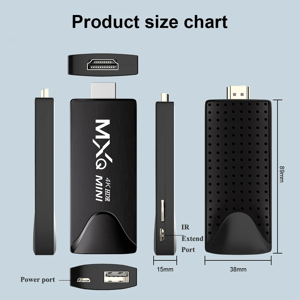 Comprar MXQMINI Android 10 mini TV Stick Quad Core soporte 4K HD 2,4G WiFi Smart TV Box Android H.265 reproductor multimedia decodificador