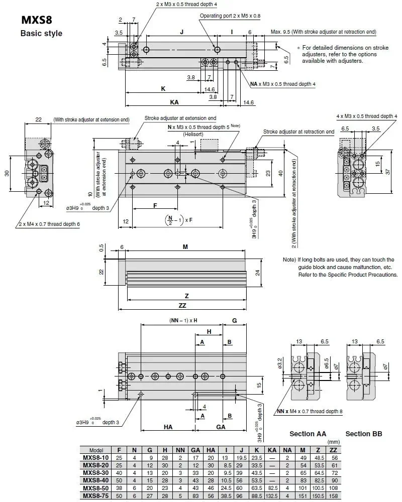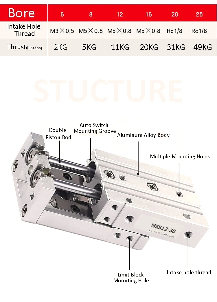 MXS8 Mesa deslizante de aire Tipo SMC Cilindro neumático Riel deslizante Cilindro de aire MXS8-10 MXS8-20 MXS8-30 MXS8-40 MXS8-50