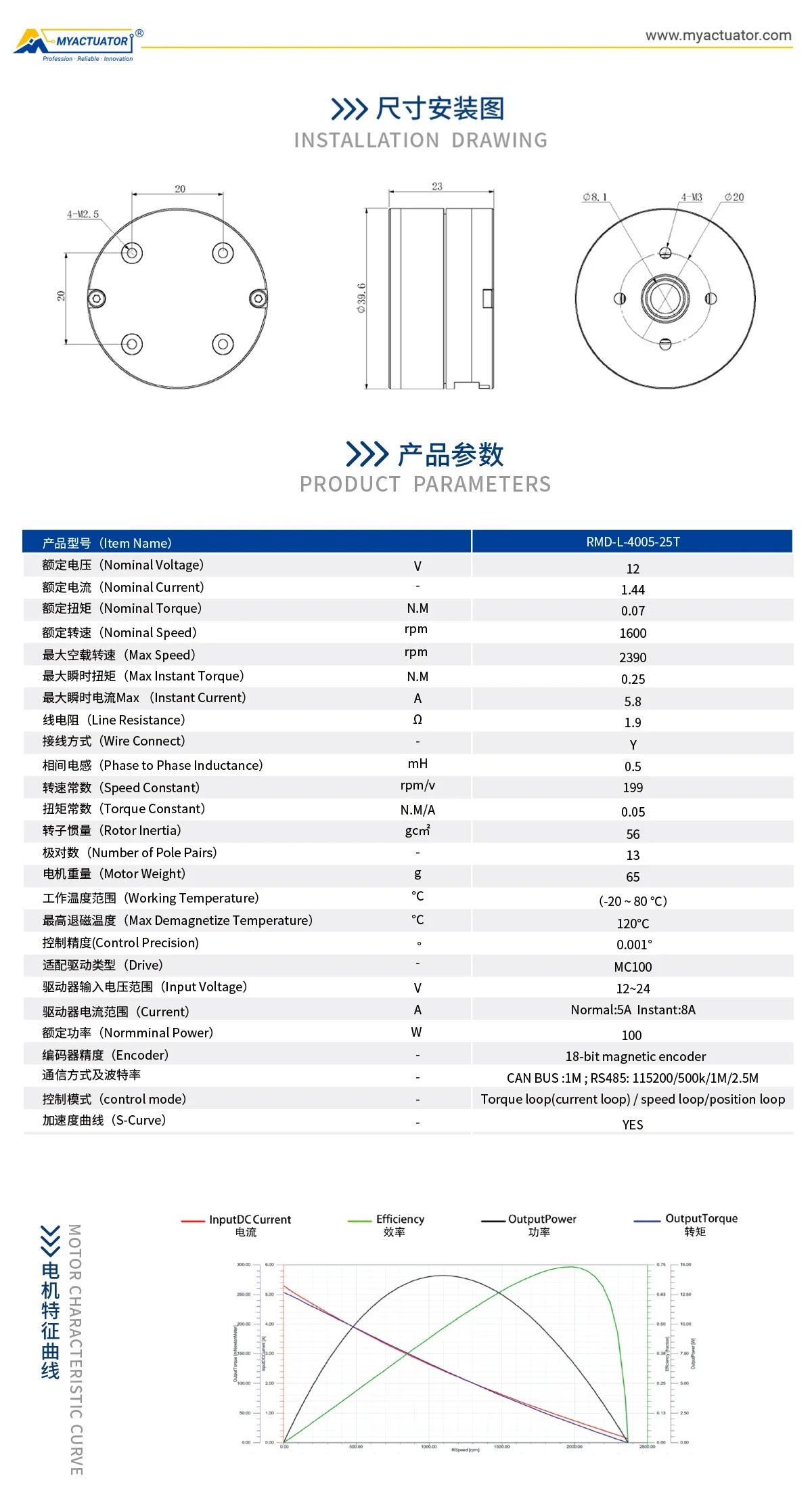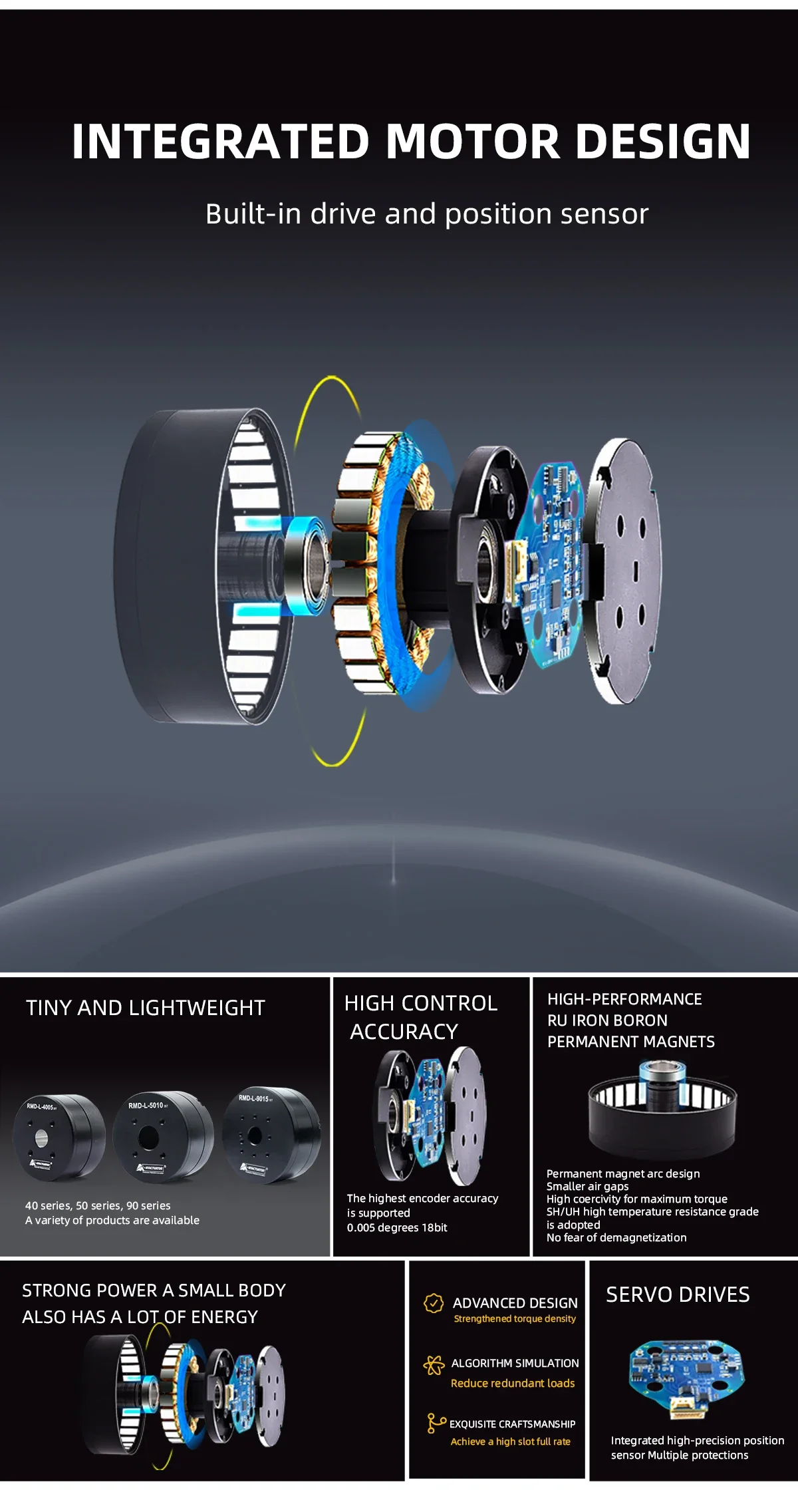 Comprar Myactuador-motor de engranaje sin escobillas para coche, servo-24v dc de 12, 24w, RMD-L-4005, tamaño pequeño, alto par, motor magnético