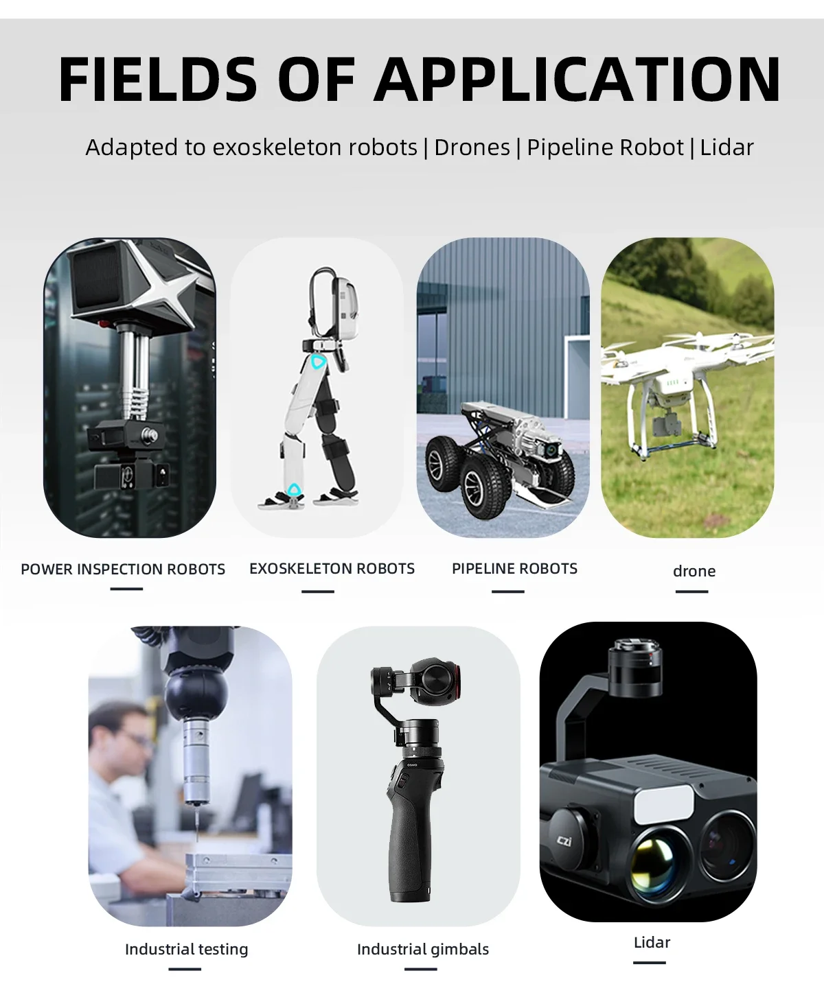 Nuestros productos son ampliamente utilizados en robots móviles portátiles, robots de exoesqueleto, robots cuadrúpedos, brazos robóticos pequeños, AGV, cardán, etc. Los productos no solo son bien recomendados por los clientes nacionales, sino que también se exportan a más de 20 países de todo el mundo, como Estados Unidos, Europa, Australia, Japón, Corea del Sur, Y Singapur. Y una profunda cooperación con la Universidad DE LA Ciudad de Nueva York, La Universidad de Ciencia y Tecnología de China, La Universidad Tongji de Shanghai, El Instituto de Tecnología de Harbin, etc.