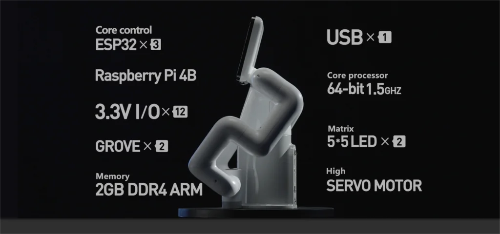 myBuddy is het eerste dual-arm robotproduct van Elephant Robotics, aangedreven door Raspberry Pi, en behoort tot Service-robot - een 13-assige humanoïde collaboratieve robot met twee armen.De werkradius van een enkele arm van myBuddy is 280 mm en de maximale laadbelasting is 250 g.Het bezit een interactief 7-inch scherm en twee 2-million pixel HD-camera's, en biedt de 3,3V I/O-poorten en Lego-poorten.myBuddy kan werken met meerdere accessoires, zoals zuigpomp, grijpers, enz. Het kan aan de behoeften van verschillende toepassingen voldoen.