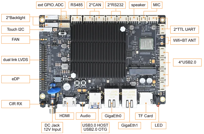 El procesador T527 destaca por su MPU Octa-core ARM Cortex-A55 y es capaz de funcionar hasta 1,8 GHz, junto con una GPU G57 MC1, compatible con 4K@30fps.H.265decodificación de vídeo y codificación de vídeo H.264 de 1080@60fps, garantizandoProcesamiento de vídeo superior.Aprovechando lo extensocaracterísticas del procesador T527,elMYD-LT527-SXentregamultimedia excepcionalrendimiento.El tableroofrece una amplia gama de interfaces de salida de video, incluidas HDMI, eDP, MIPI-DSI y un 1*Dual-LVDS, junto con interfaces de entrada de video, específicamente 2*MIPI-CSI, lo que permite pantallas multipantalla transparentes.Además, esofertasunanchogama de opciones de conectividad avanzadas, comoGigabit Ethernet dual,unoUSB3.0y cincoUSB2.0puertos,dos CANinterfaces,una interfaz Mini PCIe para módulo 4G/5G basado en USB, una ranura para tarjeta Micro SD, interfaces duales RS232 y RS485, así comoun módulo WiFi/Bluetooth integrado,todosmejorandosuCapacidades de red y transferencia de datos.Con su rendimiento robusto y sus interfaces versátiles, el MYD-LT527-SX es ideal pararobots industriales de alto rendimiento, sistemas de energía y energía, dispositivos médicos, máquinas integradas de control de pantallas, cajas inteligentes de borde, terminales de vehículos y otros dispositivos integrados que requieren funcionalidades multimedia avanzadas.