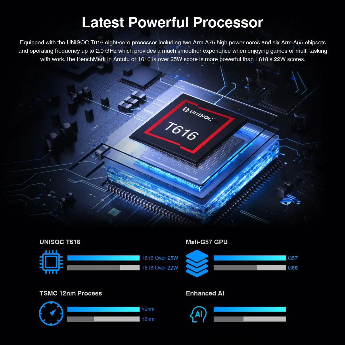 1.UNISOC T616 Octa-Core Processor