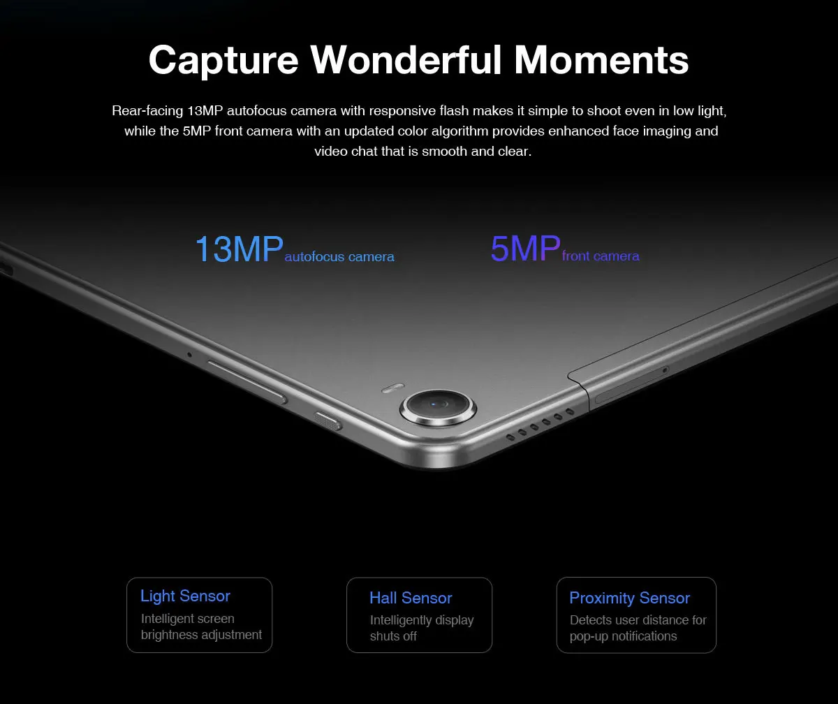 The four box speakers of NPad Pro with a smart digital power amplifier chip to deliver pure-sound audio which will let you enjoy to the music and allow clearer calling and recording.