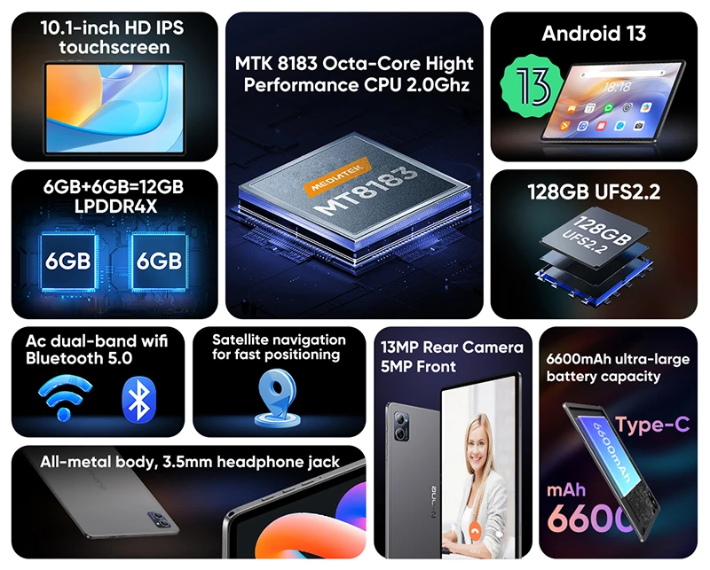 N-one NPad Q Tablet PC 10,1 pulgadas Android13 6GB RAM + 128GB ROM Octa-Core MTK8183 1280*800 pantalla IPS WIFI 6 Bluetooth 5,0 tipo C