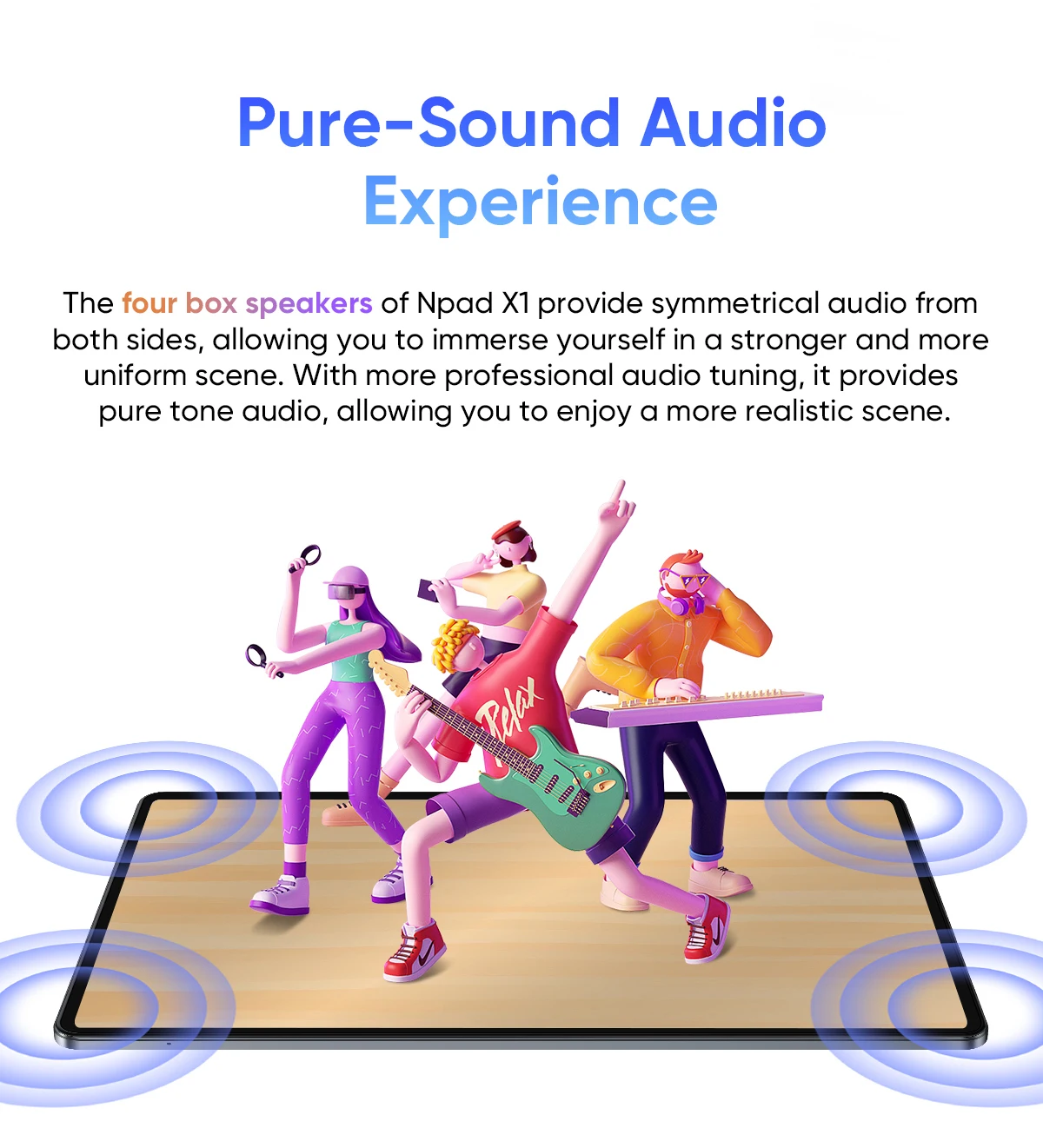 Excelente tableta. Bien fabricado y con una pantalla excelente. Los cuatro altavoces también son de buena calidad.