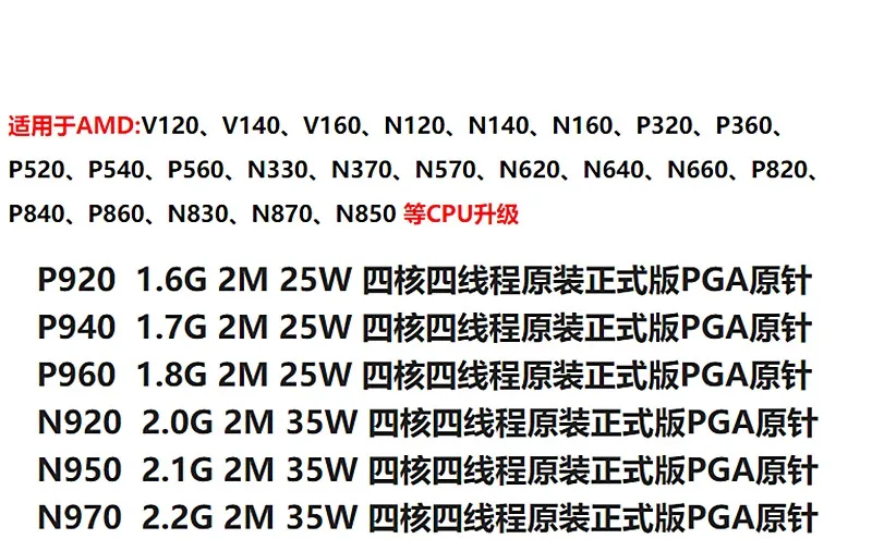 N970 N960 N950 P920 P940 P960 X920 Notebook CPU Phenom II Quad Core