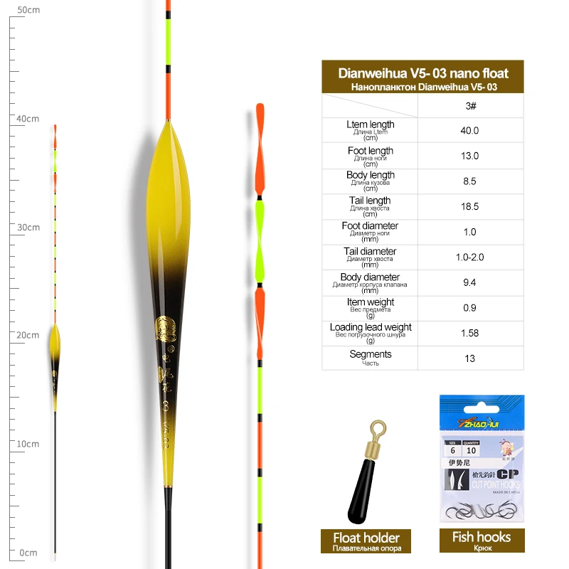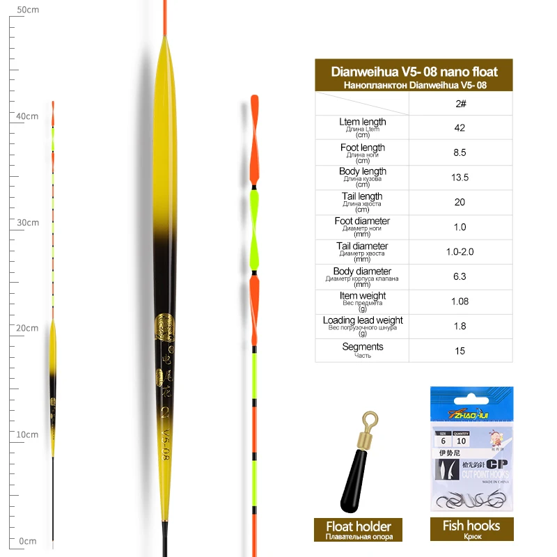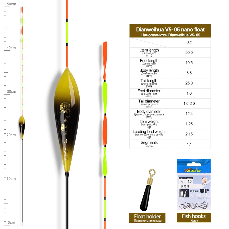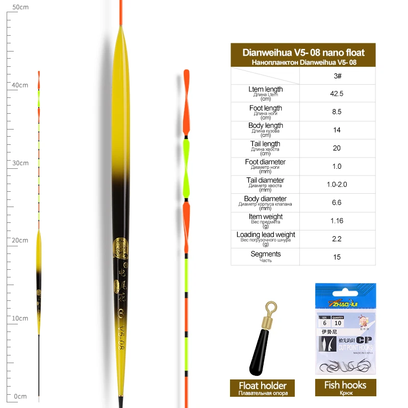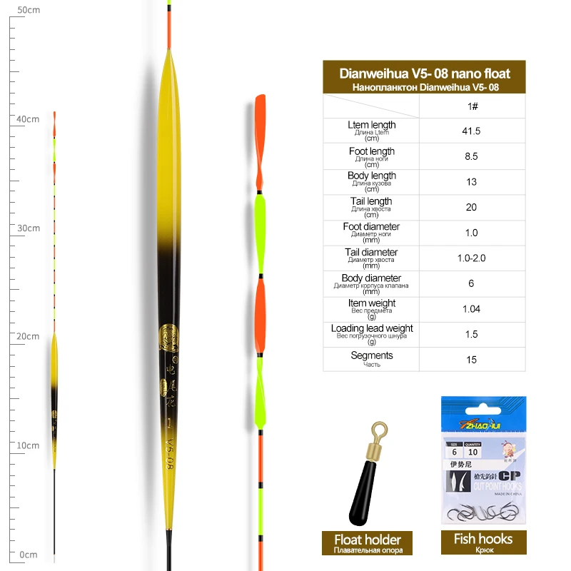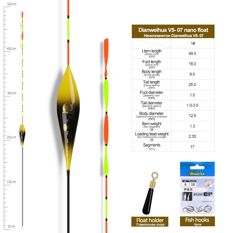 Longitud del artículo: 18,5 cm, longitud del pie: 5,0 cm, longitud de la cola: 9,0 cm, longitud del cuerpo: 4,5 cm, peso del artículo: 0,6g, peso del plomo de carga: 2,51G, diámetro del pie: 1,0mm, diámetro del cuerpo: 13,1mm, diámetro de la cola: 2,0-1,0mm, segmentos: 5