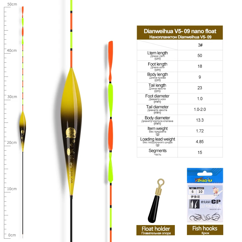 2. El cuerpo del flotador está hecho de nano material compuesto de alta calidad, que no come agua, y es estable y sensible en el agua.