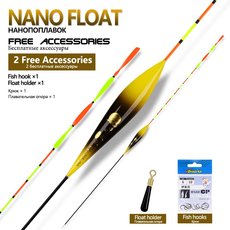 Comprar Nano flotador compuesto + 1 bolsa de ganchos sensibles, boya de cola en espiral, accesorios de flotador de pesca Vertical de agua dulce, herramientas de aparejos, 1 pieza