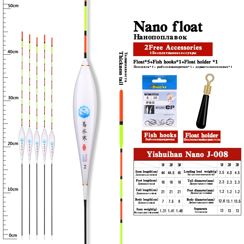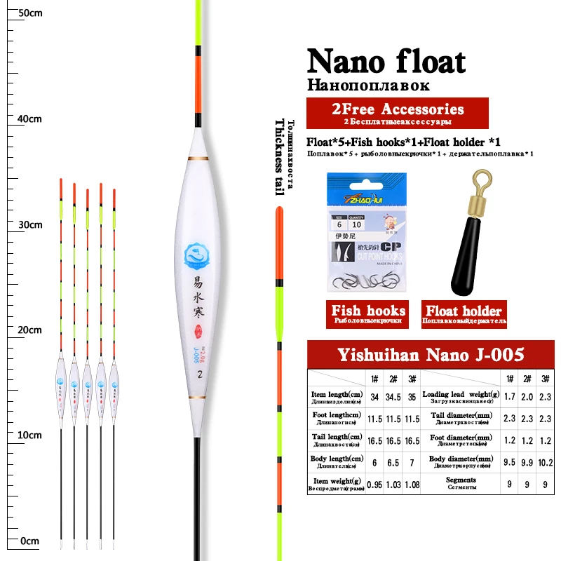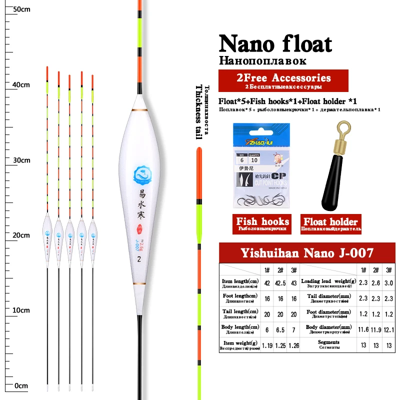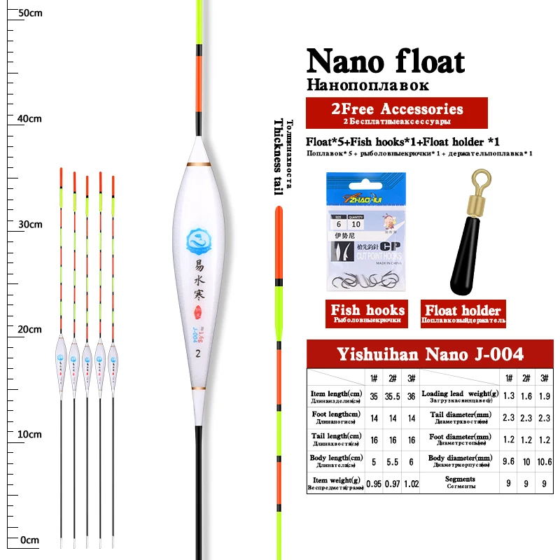 5 uds Nano flotadores compuestos + 1 anzuelos de bolsa + 1 asiento de boya Bobber de aguas poco profundas boya de pesca Vertical accesorios de herramientas de pesca de Río
