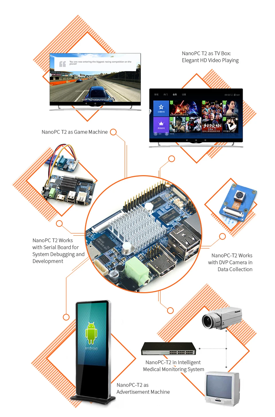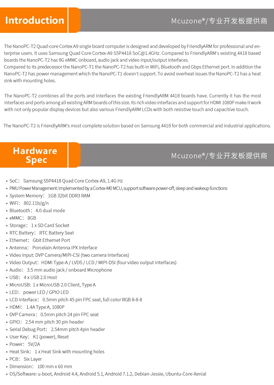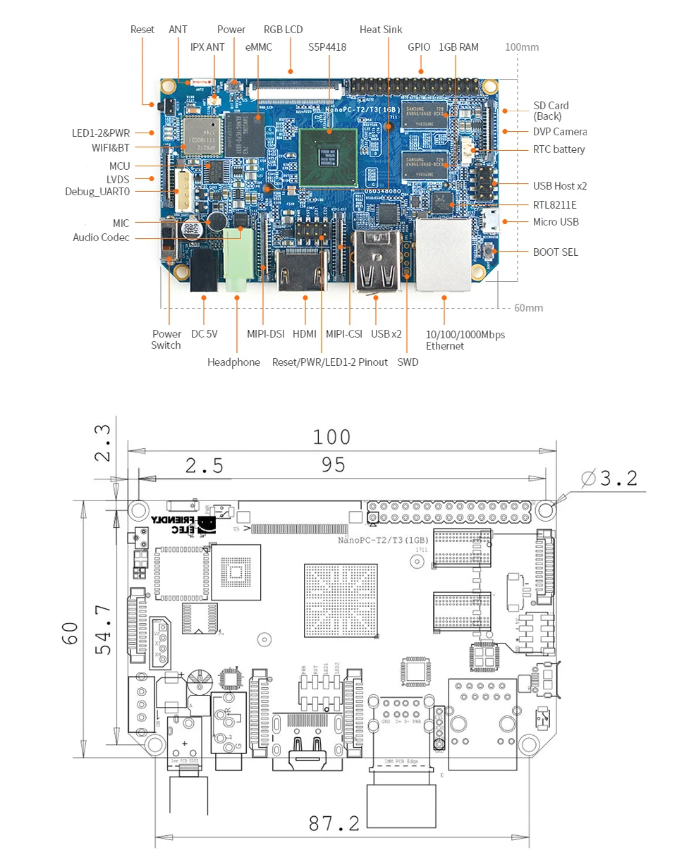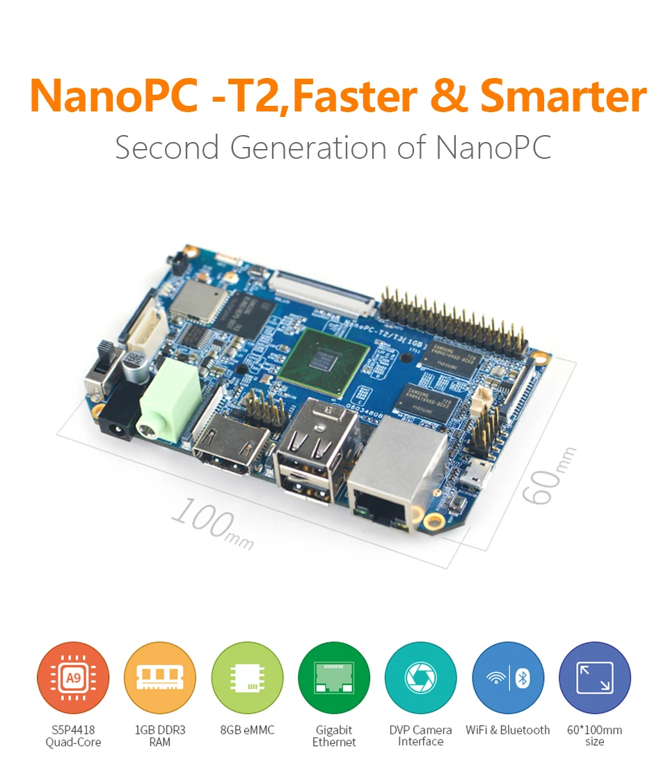 NanoPC-T2,FriendlyELEC WiFi integrado y bluetooth Quad Core Cortex-A9 Placa de desarrollo S5P4418 Tarjeta Computadora 100x60 cm