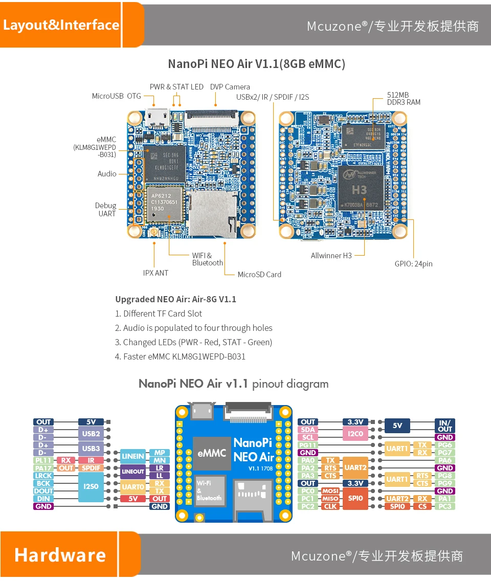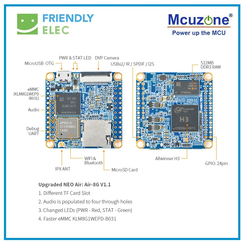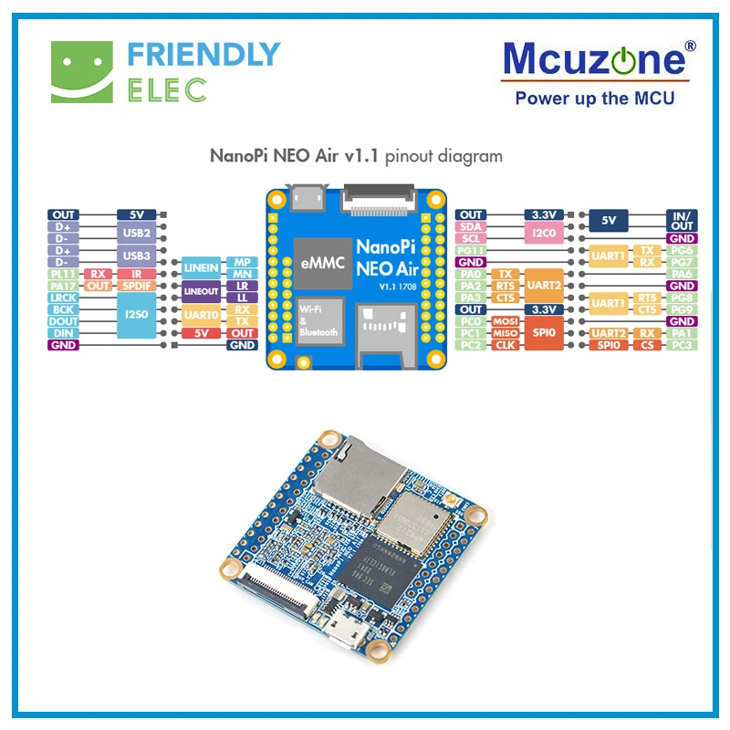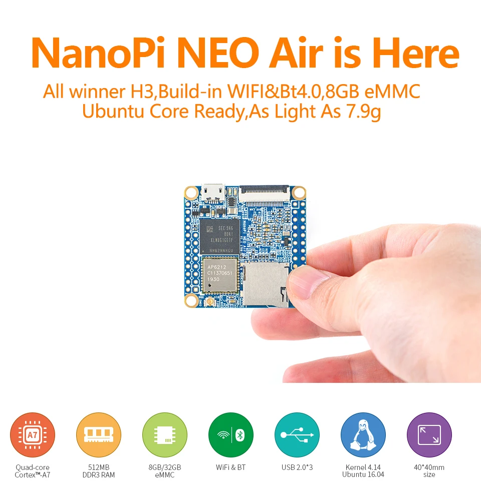 Comprar NanoPi NEO Air, 512MB de RAM, WIFI y Bluetooth, 8GB eMMC, Allwinner H3, Cortex-A7 de cuatro núcleos, FriendlyELEC