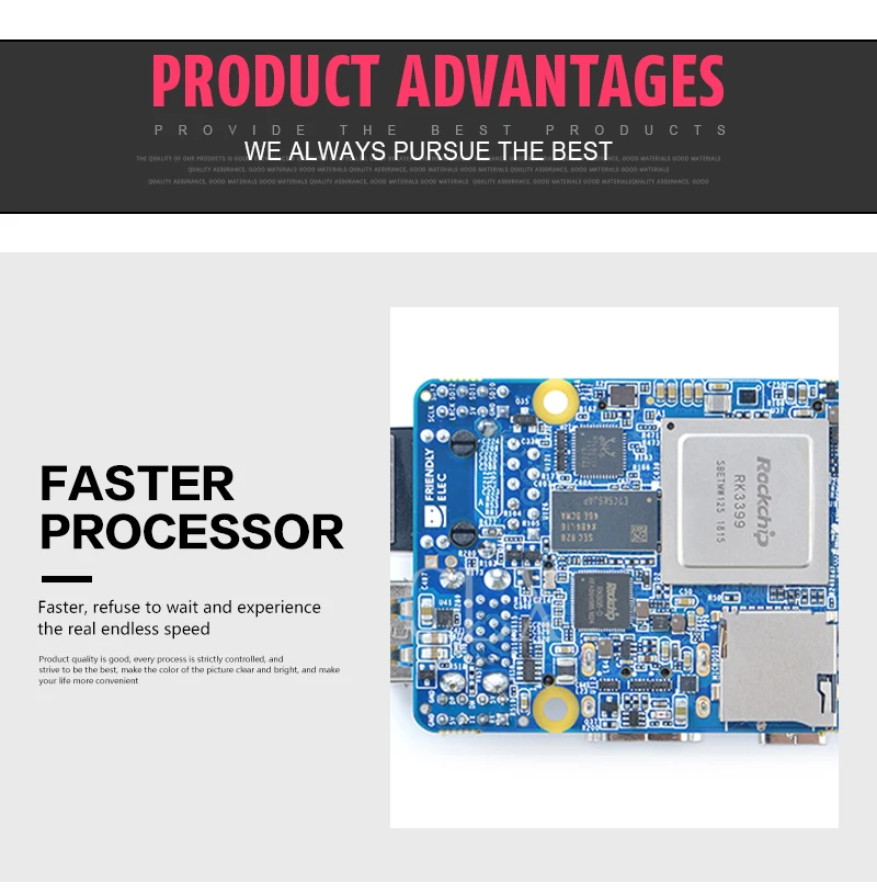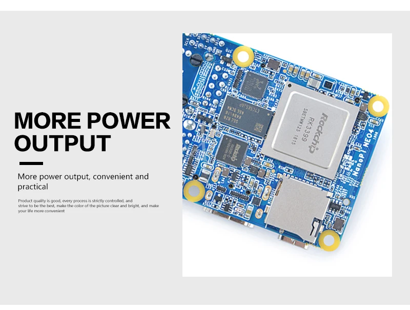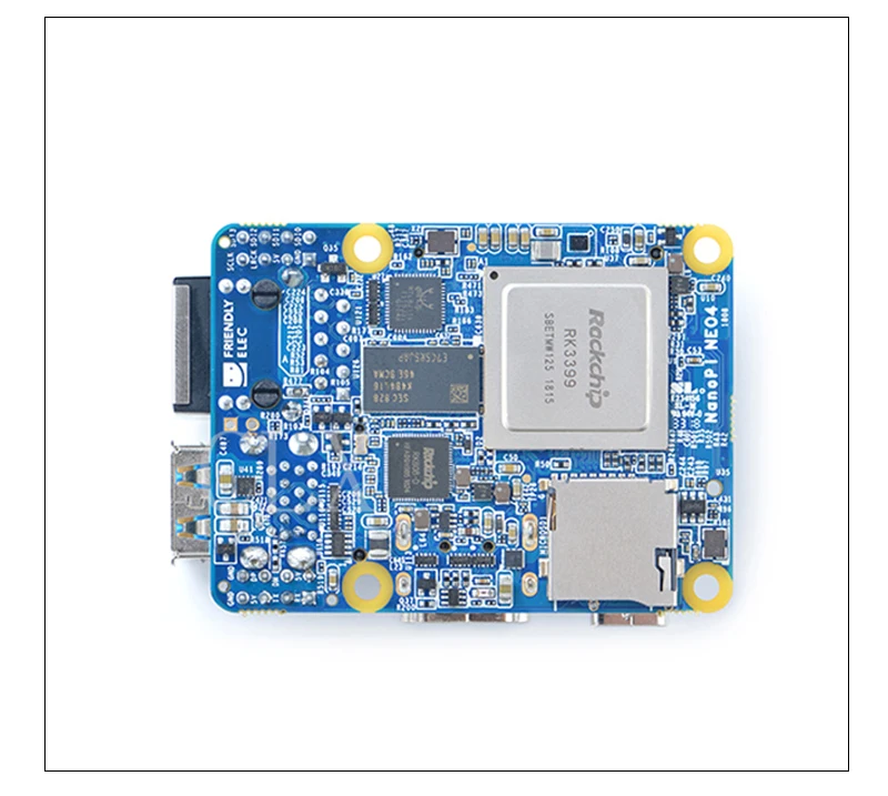 The NanoPi NEO4 is an RK3399 SoC based ARM board. Its PCB size is only 60 x 45 mm and has rich hardware resources. These features make it a good platform for rapid product prototyping and various applications.