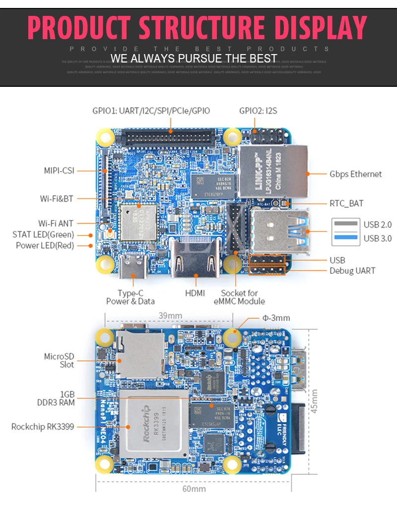 NanoPi NEO4 1GB DDR3 Rockchip RK3399 an onboard Wi-Fi/BTmodule supports Android Ubuntu Desktop/CORE/Lubuntu