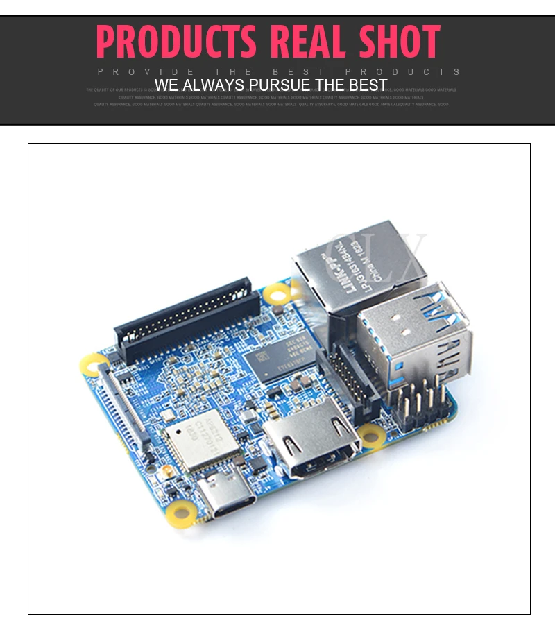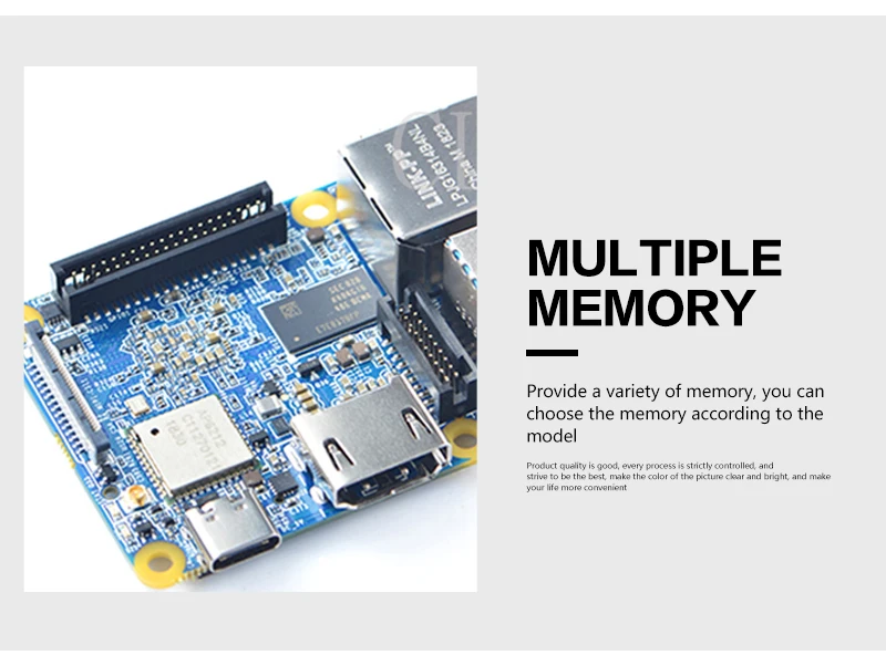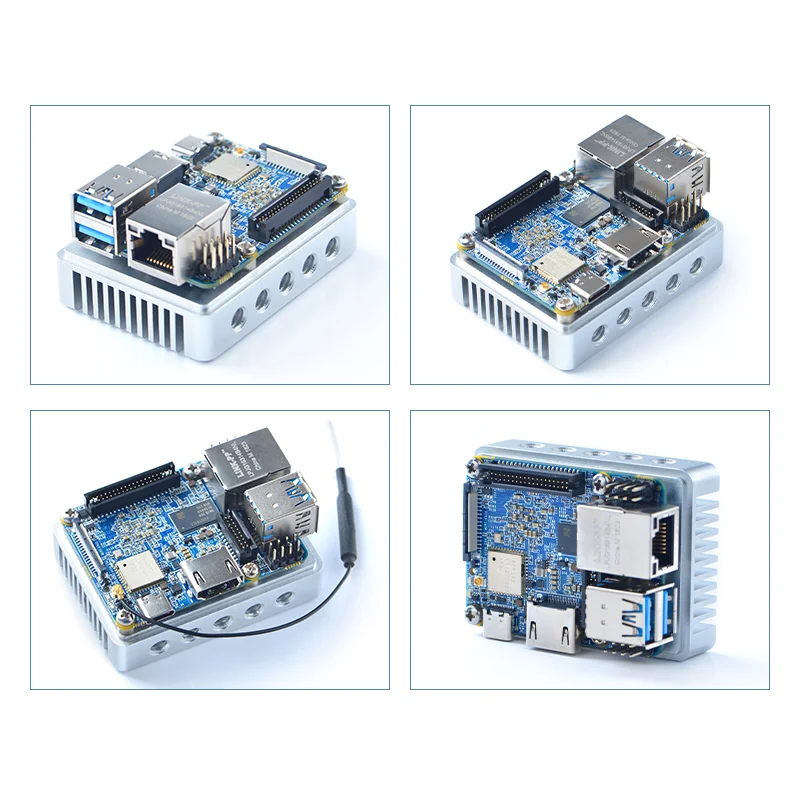NanoPi NEO4 has 1GB RAM, an onboard 2.4G wireless module, and rich hardware resources, such as USB3.0, USB2.0, PCIe, GbE, HDMI, MIPI-CSI, eMMC socket, SPI, GPIO, I2C, PWM, RTC, UART, etc.